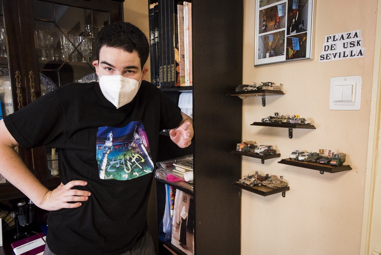 Y se despide con su tercera historia, que guarda relación con una exposición de pequeños coches que tiene en su salón: “Un amigo de mi padre, con doble nacionalidad española y siria, se fue a Alepo tras jubilarse en 2012, con tan mala suerte que al llegar empezó la guerra", comienza. Este amigo desapareció, y Bernar estuvo buscándolo por internet desde 2012 hasta 2016. "Al final dimos con él cuando ya estaba regresando a España", asegura. "Llegaba de trabajar y me ponía a leer textos para ver si aparecía sus nombres, hablé con militares sirios, con la Luna Roja, con médicos… También veía muchos videos de guerras y ahí me di cuenta de que la base de los coches, que muchos no estaban ni blindados, eran coches de los 90. Yo fui un niño en los 90 y tenía muchos coches de aquella época, así que los cogí todos y fui transformándolos en los vehículos del ejército sirio, de los rebeldes, del Estado Islámico, de Al-Qaaeda, de las milicias... Todo con cartón y pinturas", concluye.