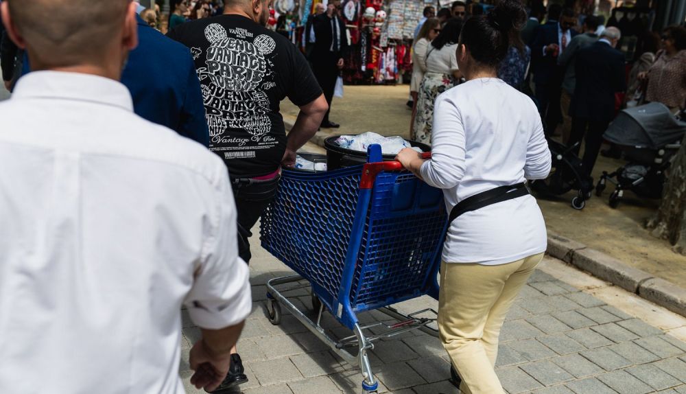 Otro de esos carritos lo lleva una joven pareja. El pasado Domingo de Ramos, en el Parque de María Luisa, señalaban casi de pasada, sin querer pararse demasiado, que tienen un niño pequeño. "Mi familia tiene que comer", decía él.
