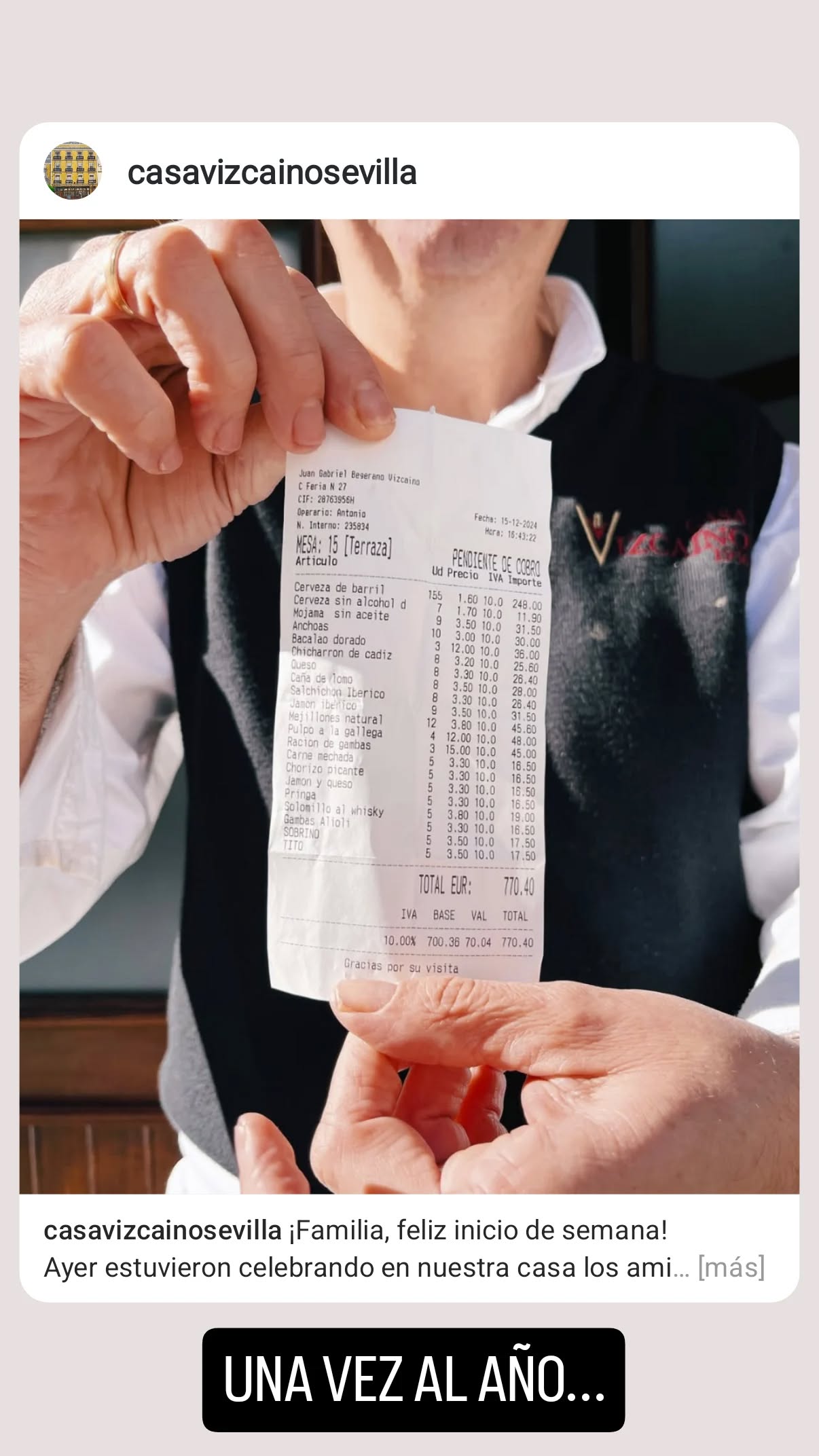Un local histórico con su cuenta histórica: casi 800 euros a base de cervezas y tapeo. Casa Vizcaíno, ubicado en la calle Feria, en el centro de Sevilla, ha dado a conocer el ticket más alto que se ha puesto nunca en el local.
