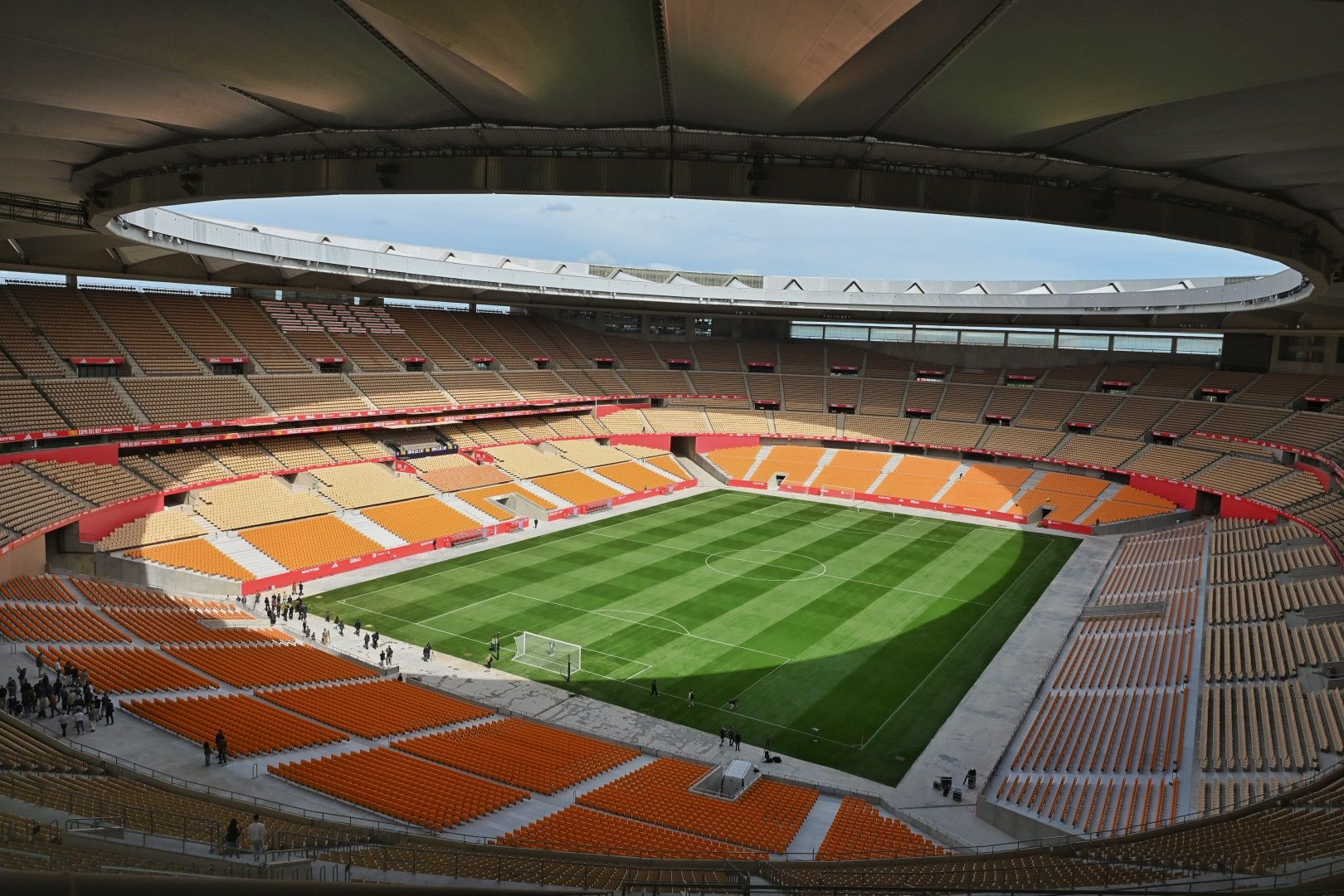 En las últimas semanas se llegó a temer por muchos aficionados que las obras no estuvieran listas. Sin embargo, tanto el césped como los asientos se han completado en los últimos días quedando, de esta forma, un campo sin pistas de atletismo y con el público mucho más cerca. La intención del Gobierno andaluz es que se convierta definitivamente en una especie de Wembley español.