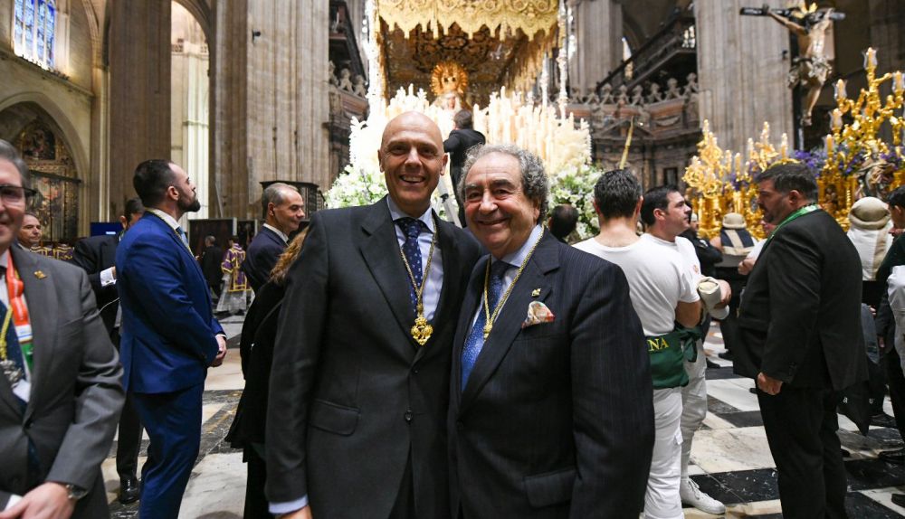 A la cita no han faltado las personas que componen ambas hermandades. El hermano mayor de la Macarena, José Antonio Fernández Cabrero, ha compartido este emotivo momento con Sergio Sopeña Carrizo, hermano mayor de la Esperanza de Triana.