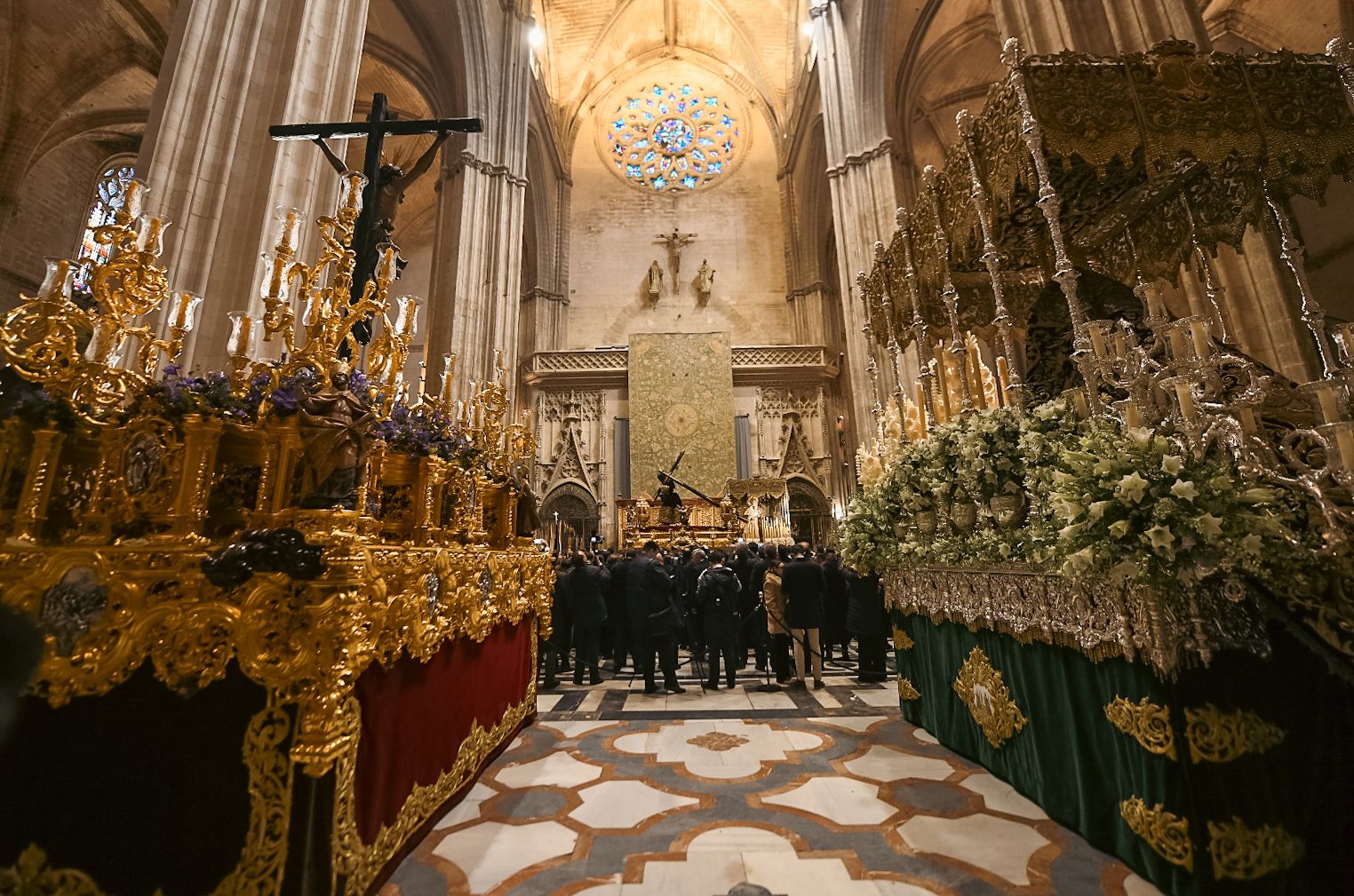 Emotiva entrada de la Esperanza Macarena y el Gran Poder en la Catedral de Sevilla: un momento de fe y tradición