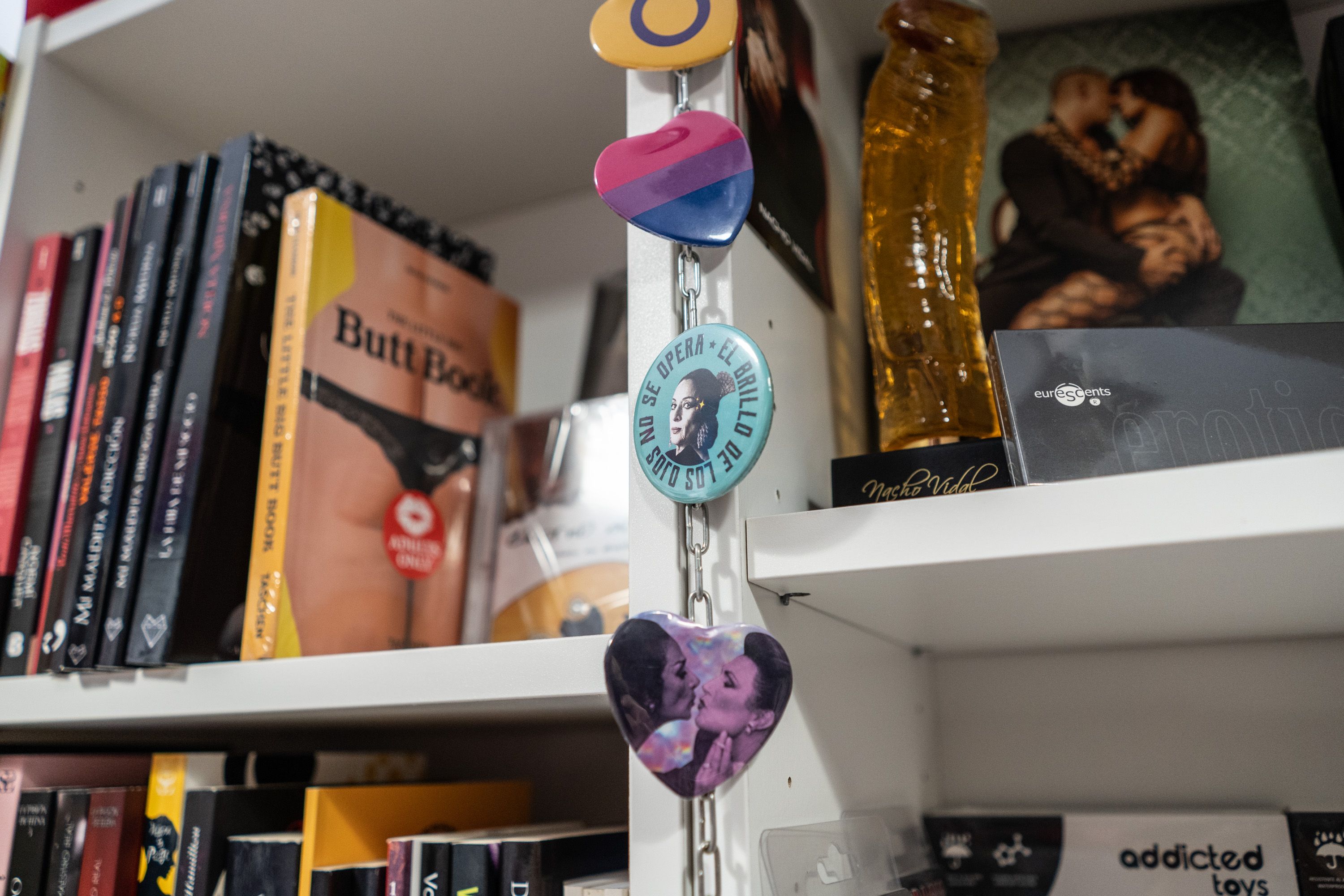 Masajeadores de próstata de electroestimulación de metal pesado, pluges anales o anillos doble delfín con vibración, pero también libros. Esta tienda es una de las pocas de Andalucía que cuenta con una sección de literatura erótica y libros de ayuda, e incluso organizó una feria del libro erótico con autores. Un mundo para el placer que atrae cada vez a más personas independientemente de su edad.