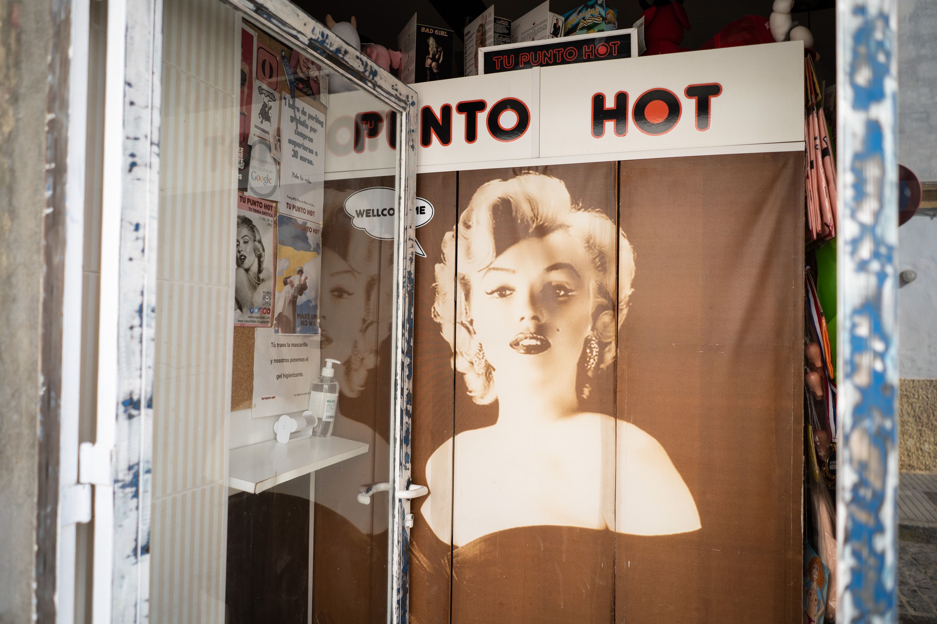 La pareja eligió para instalarse una calle emblemática de Jerez. A unos metros se divisa la casa donde creció La faraona y, varios pasos más se sitúa la estatua de La Paquera, que se ve desde la puerta del sex shop. “Si Lola Flores viviera, sería clienta. No me extrañaría, ella era muy abierta en su época”, dice frente a una chapa con la imagen de la artista besando a Rocío Jurado.