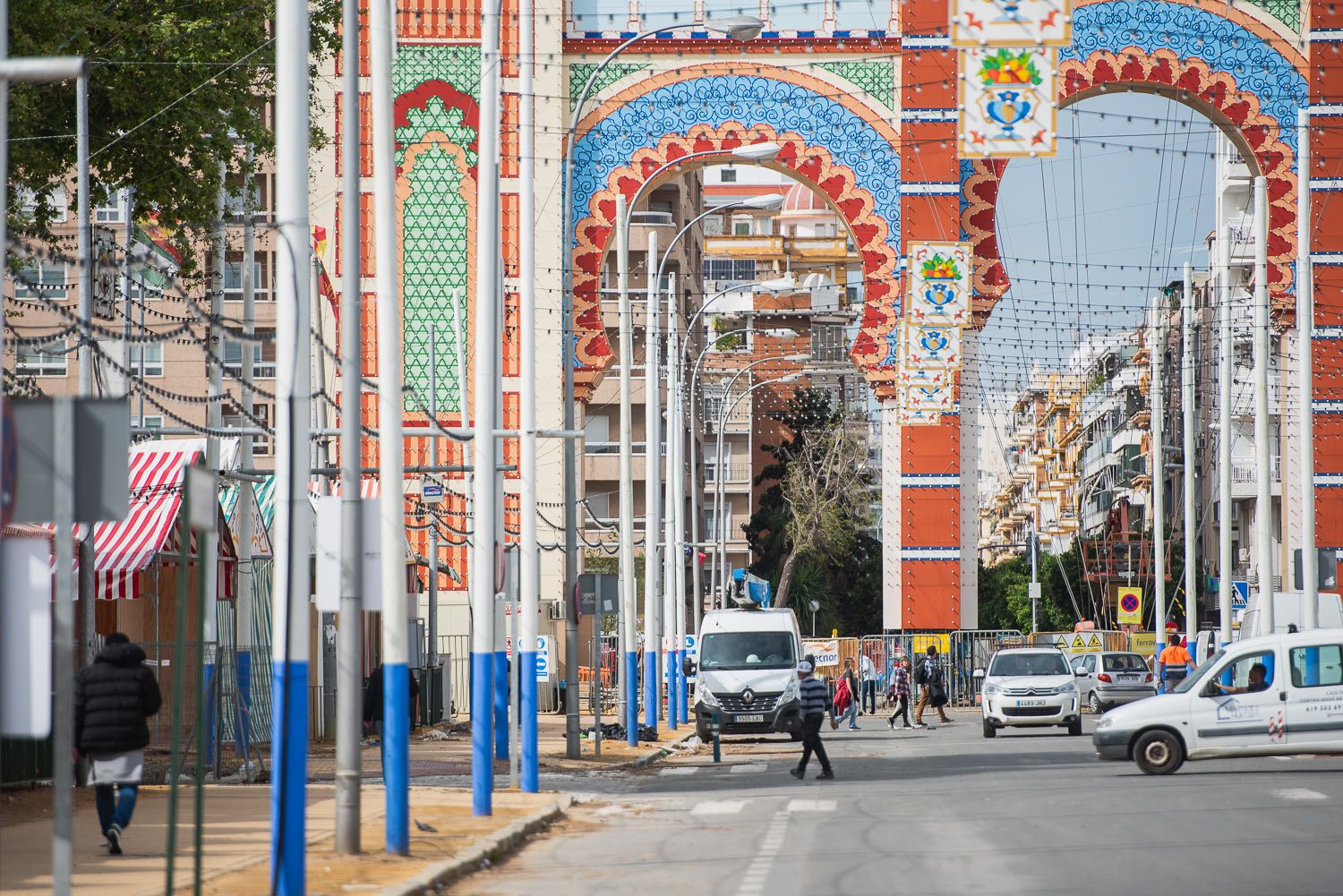 La portada de la Feria de Abril de Sevilla, a unos días del inicio.
