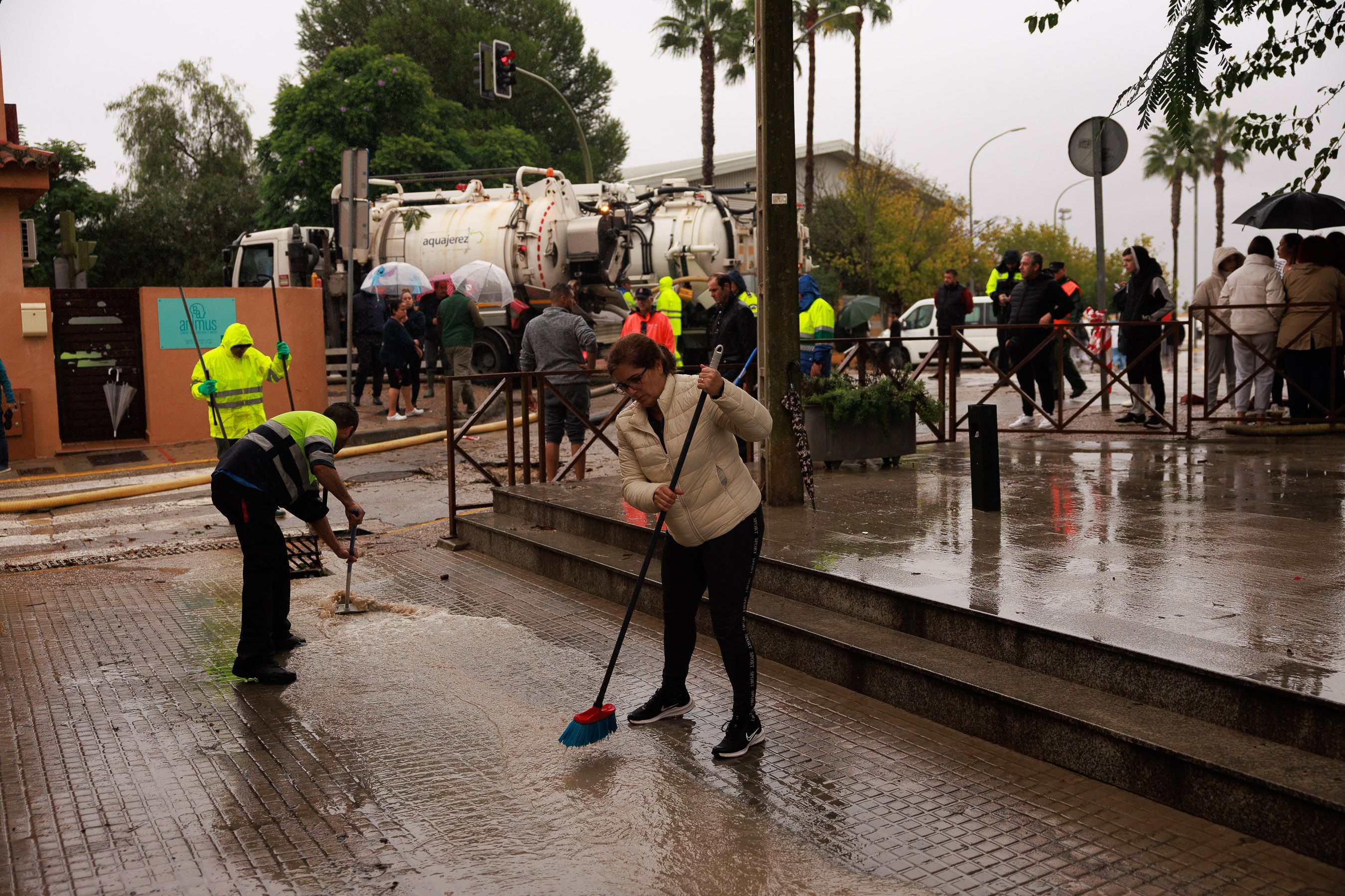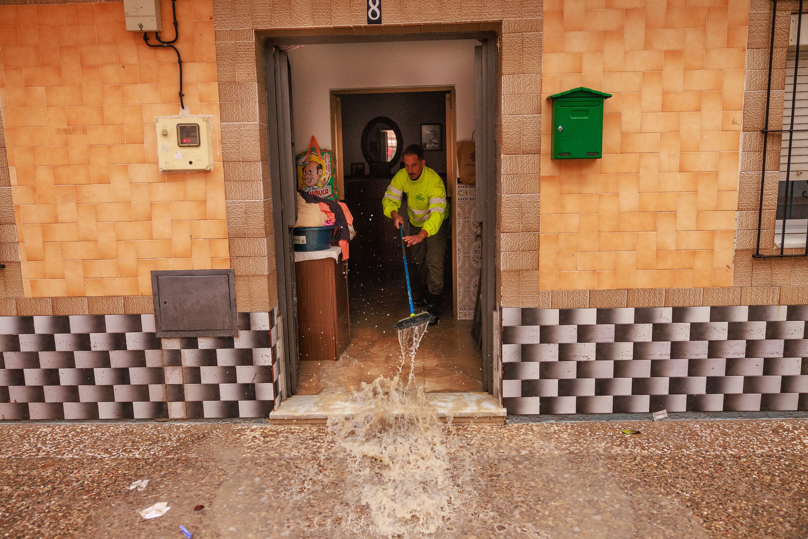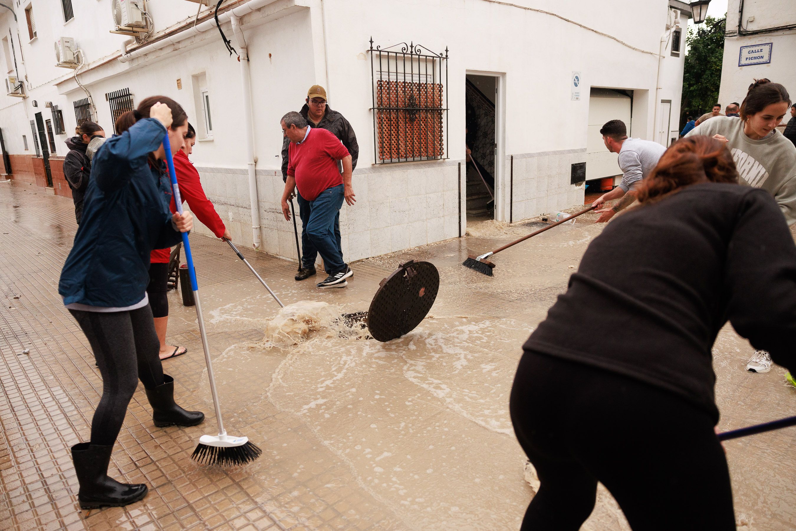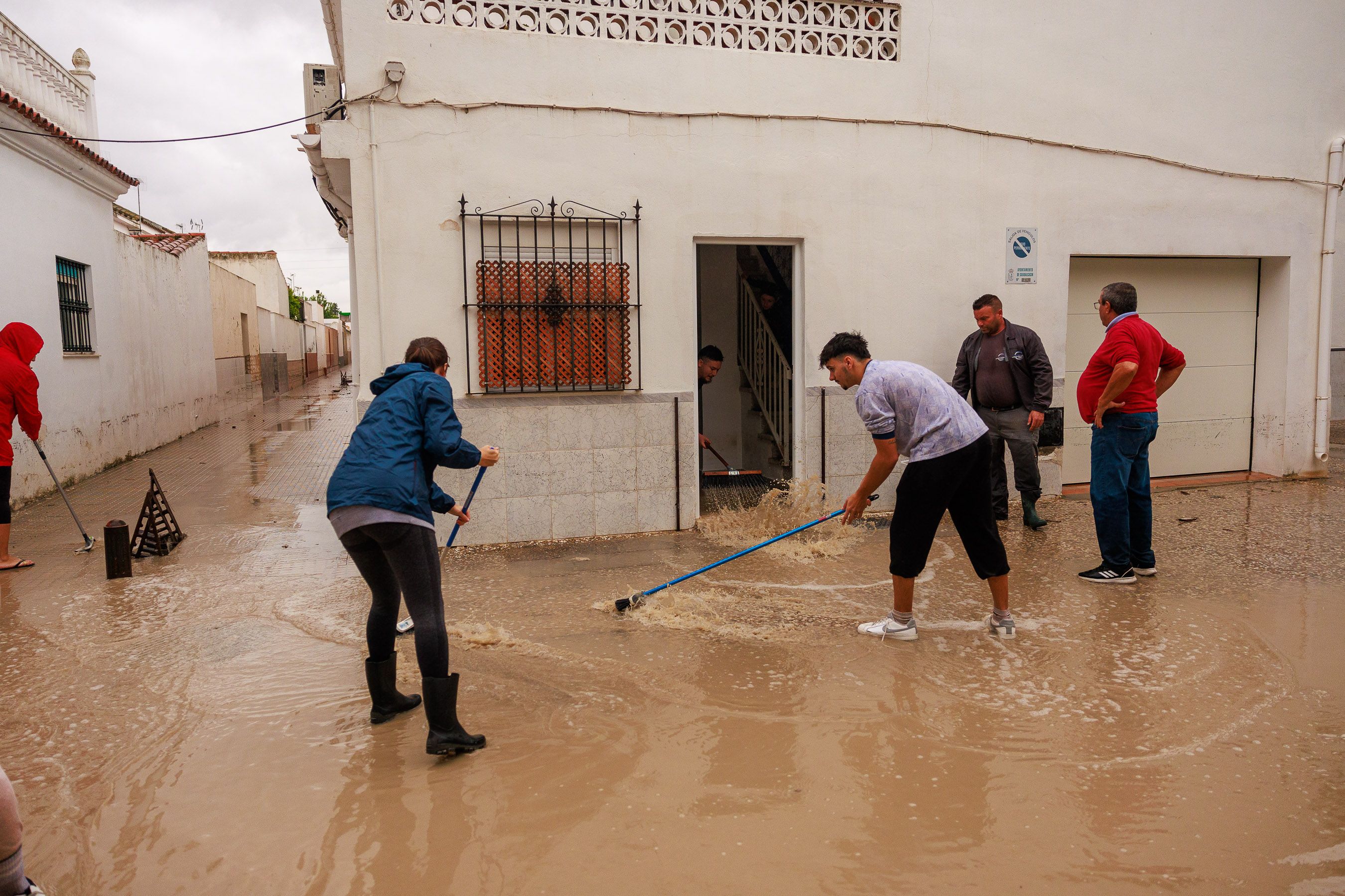 Vecinos achicando agua tras el paso de la dana de 2024 por Guadalcacín.