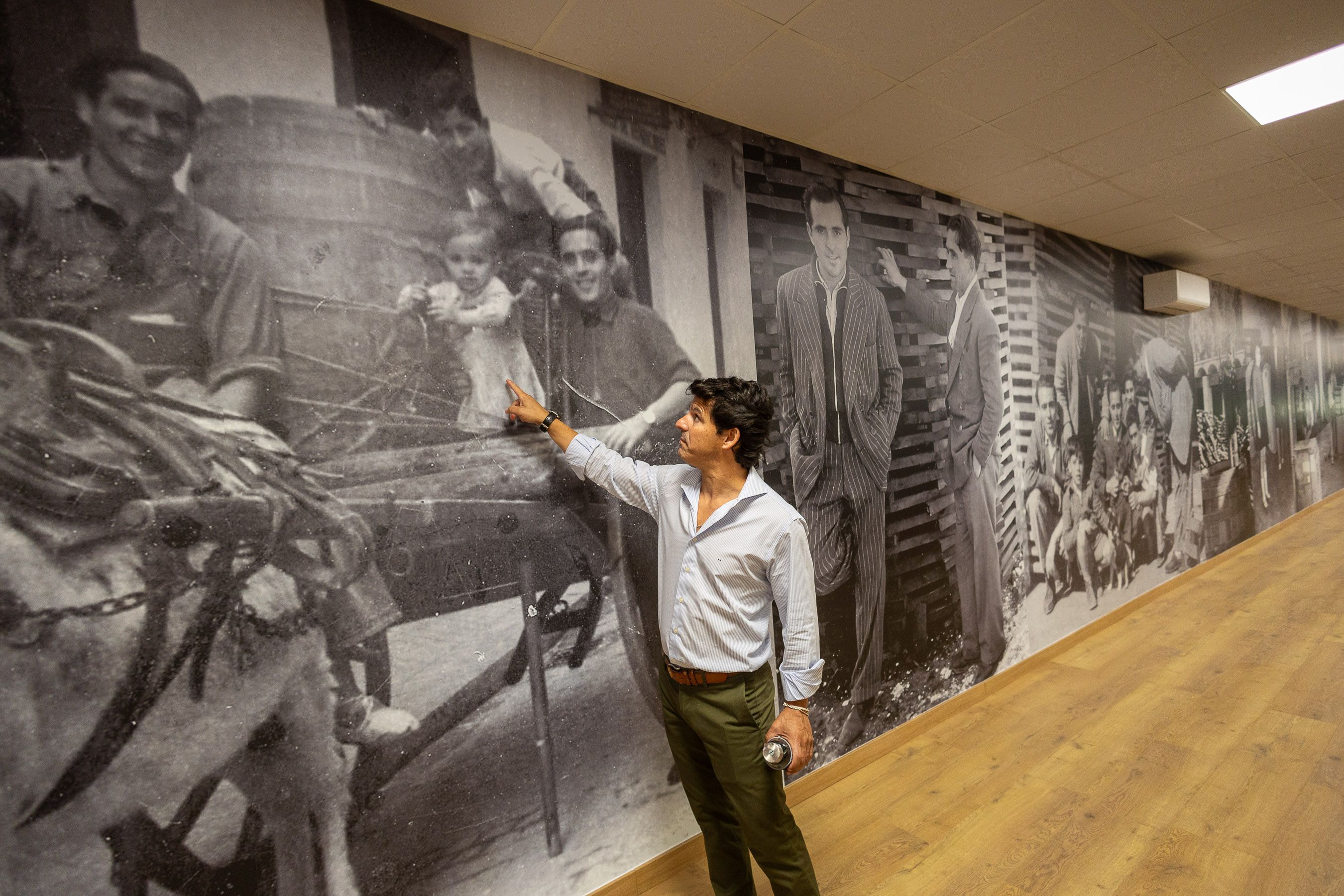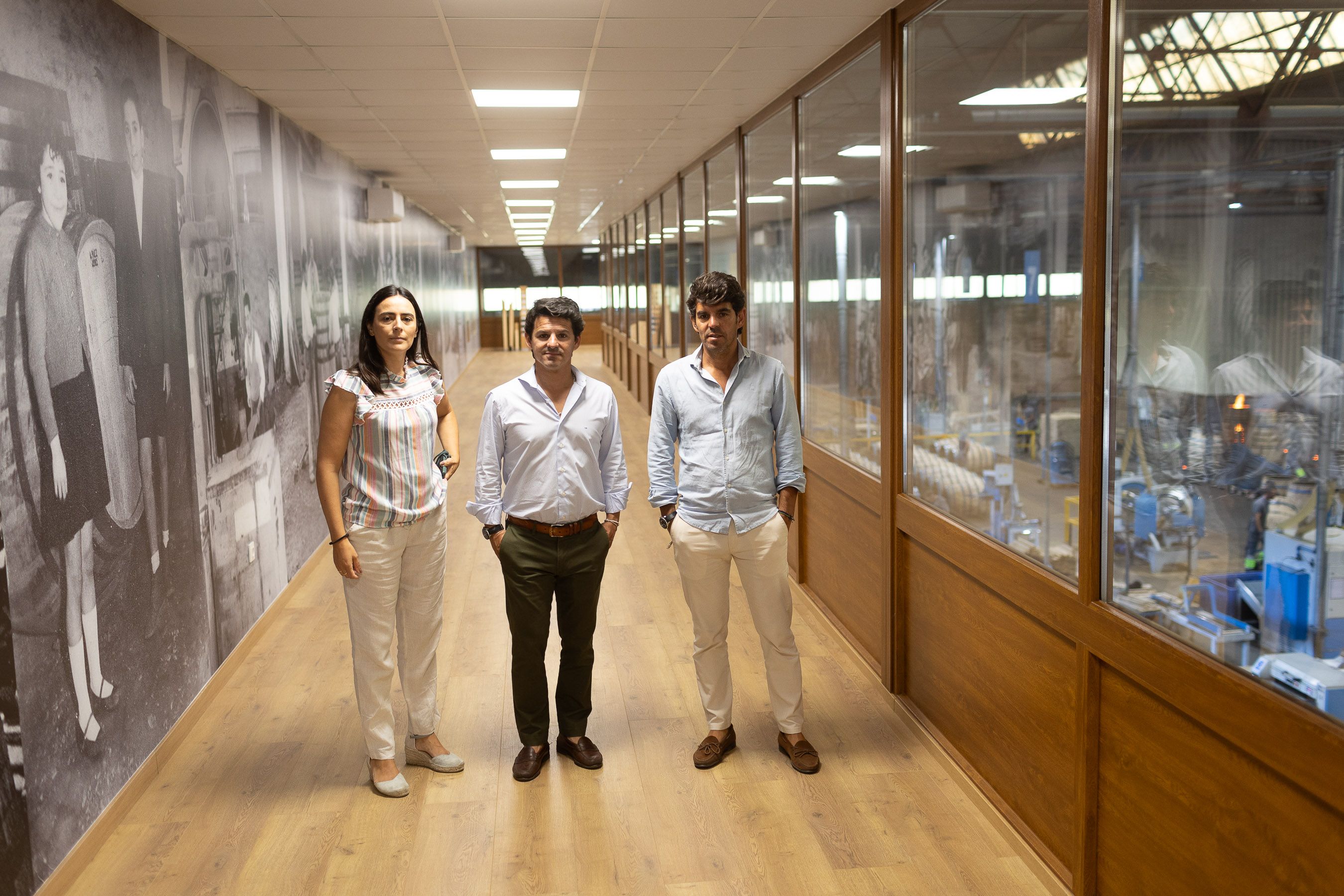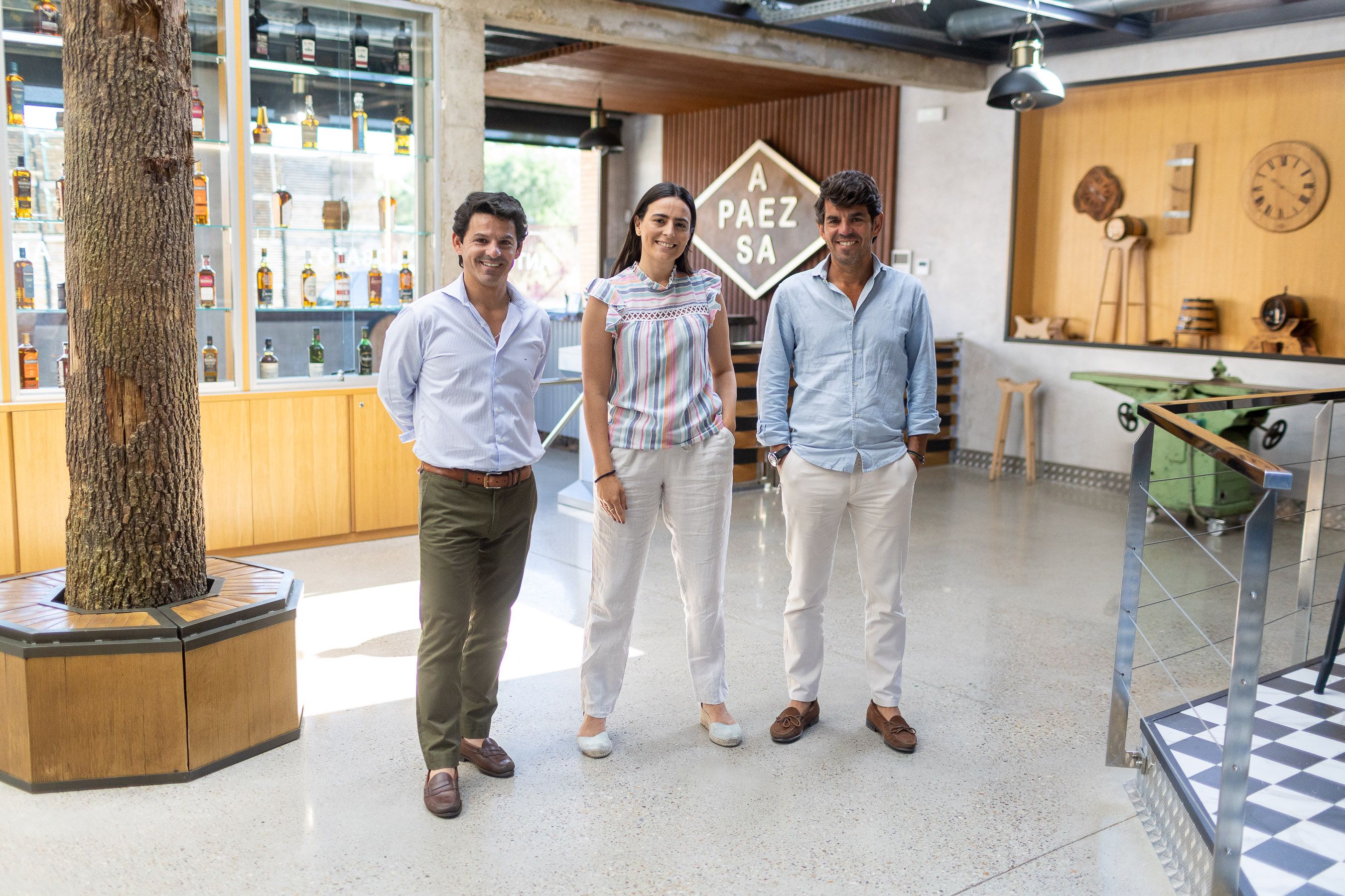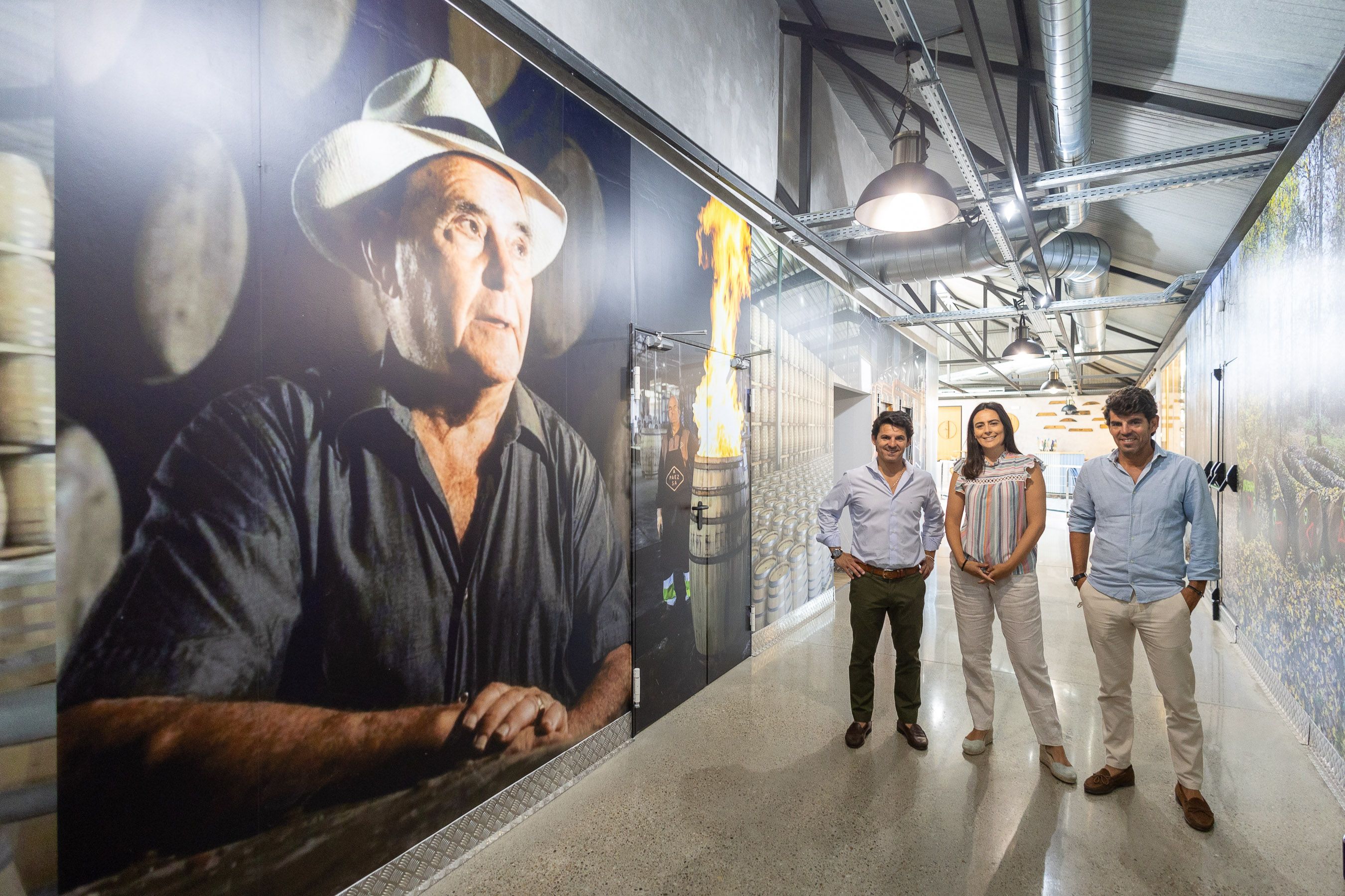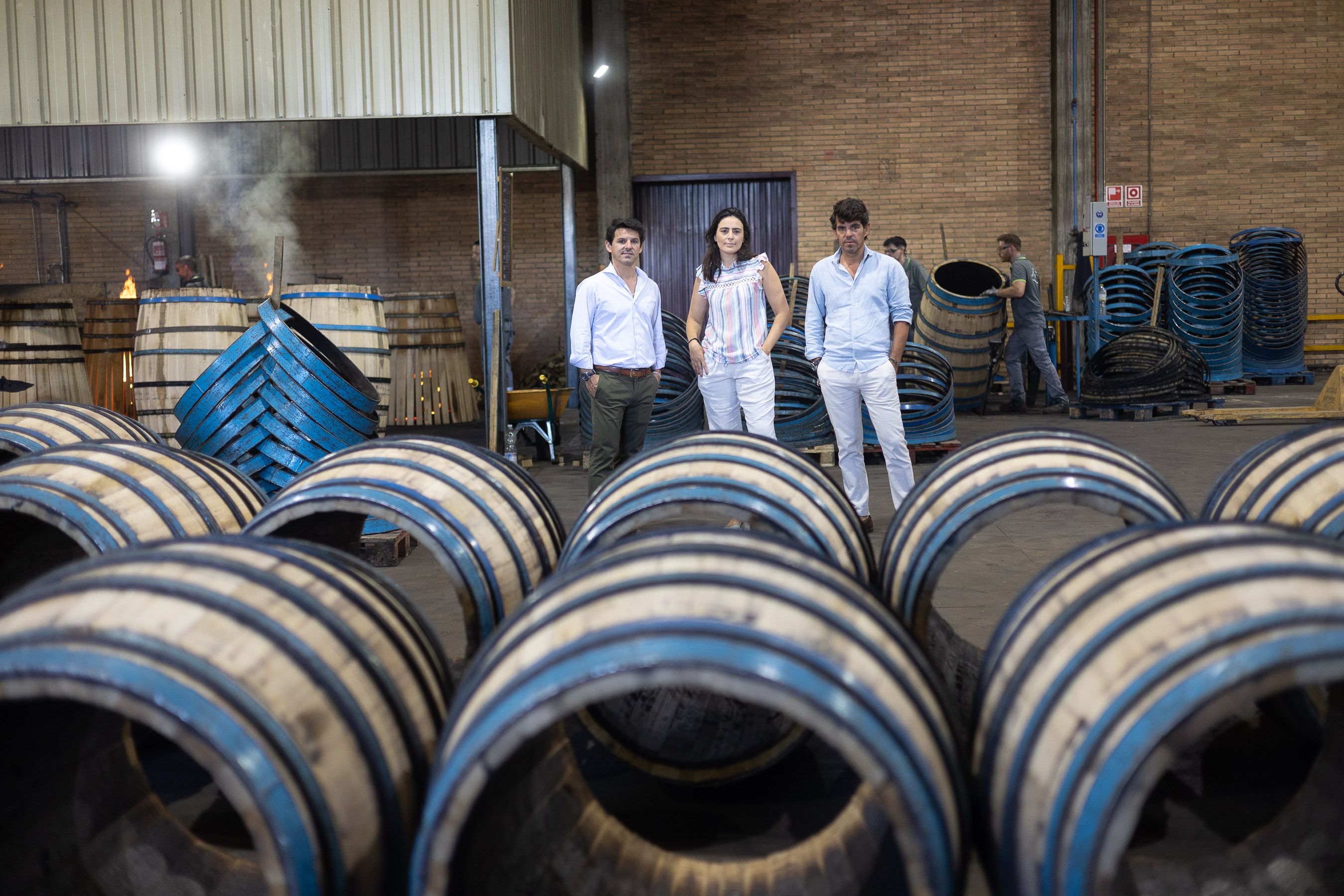 Antonio, Alba, e Isaac, nietos de Antonio Paéz Lobato, al frente del envinado, el centro de visitas y la propia tonelería.