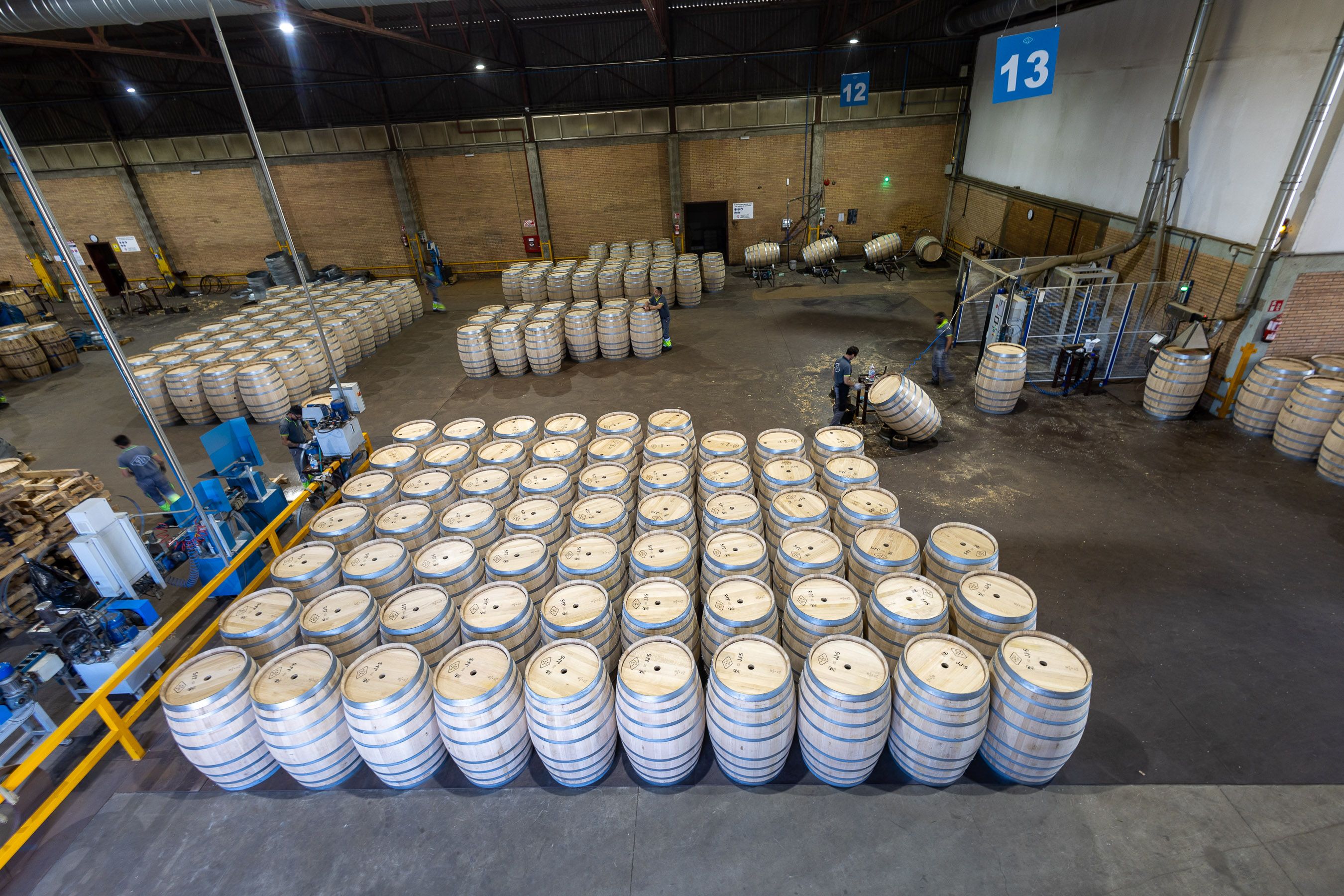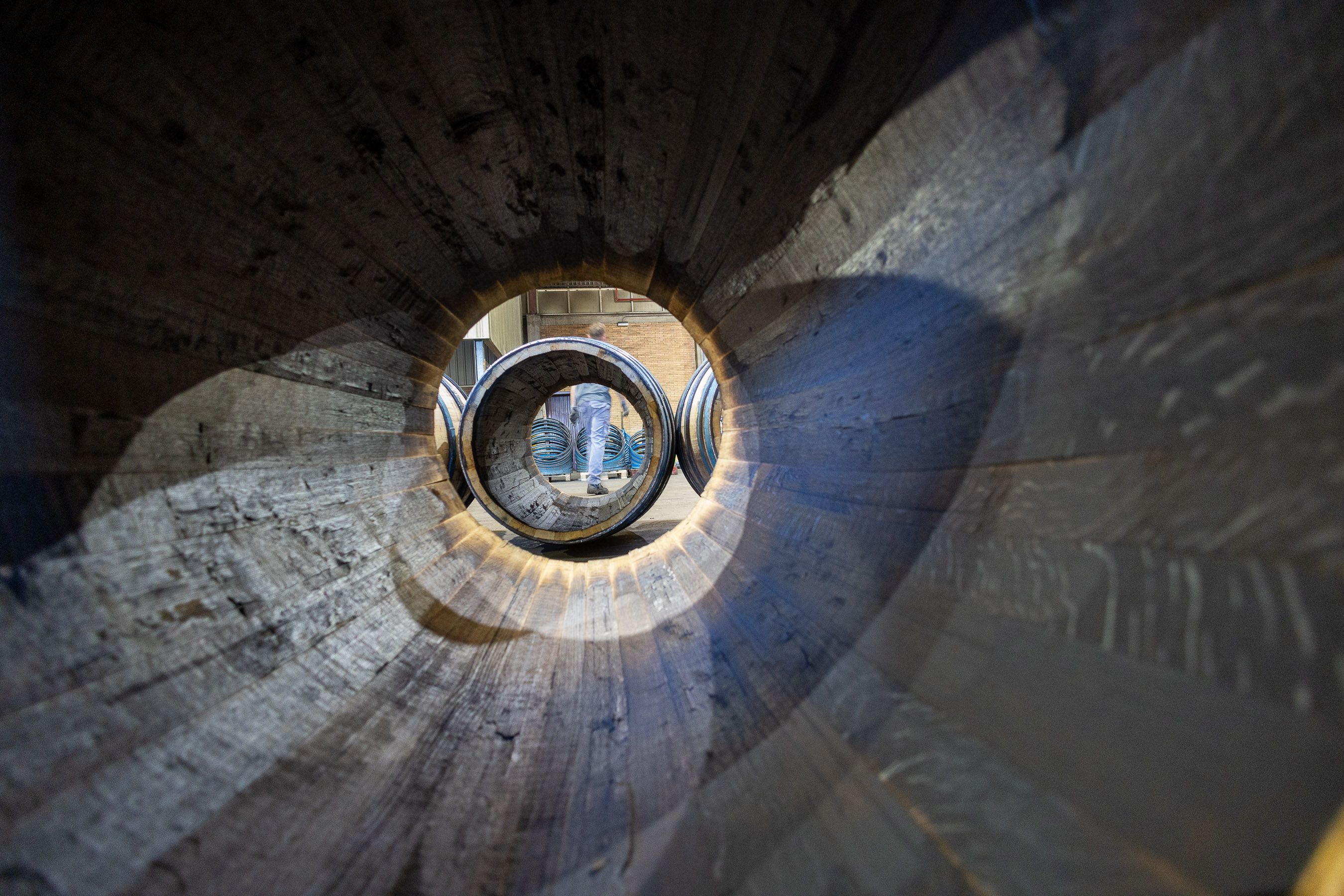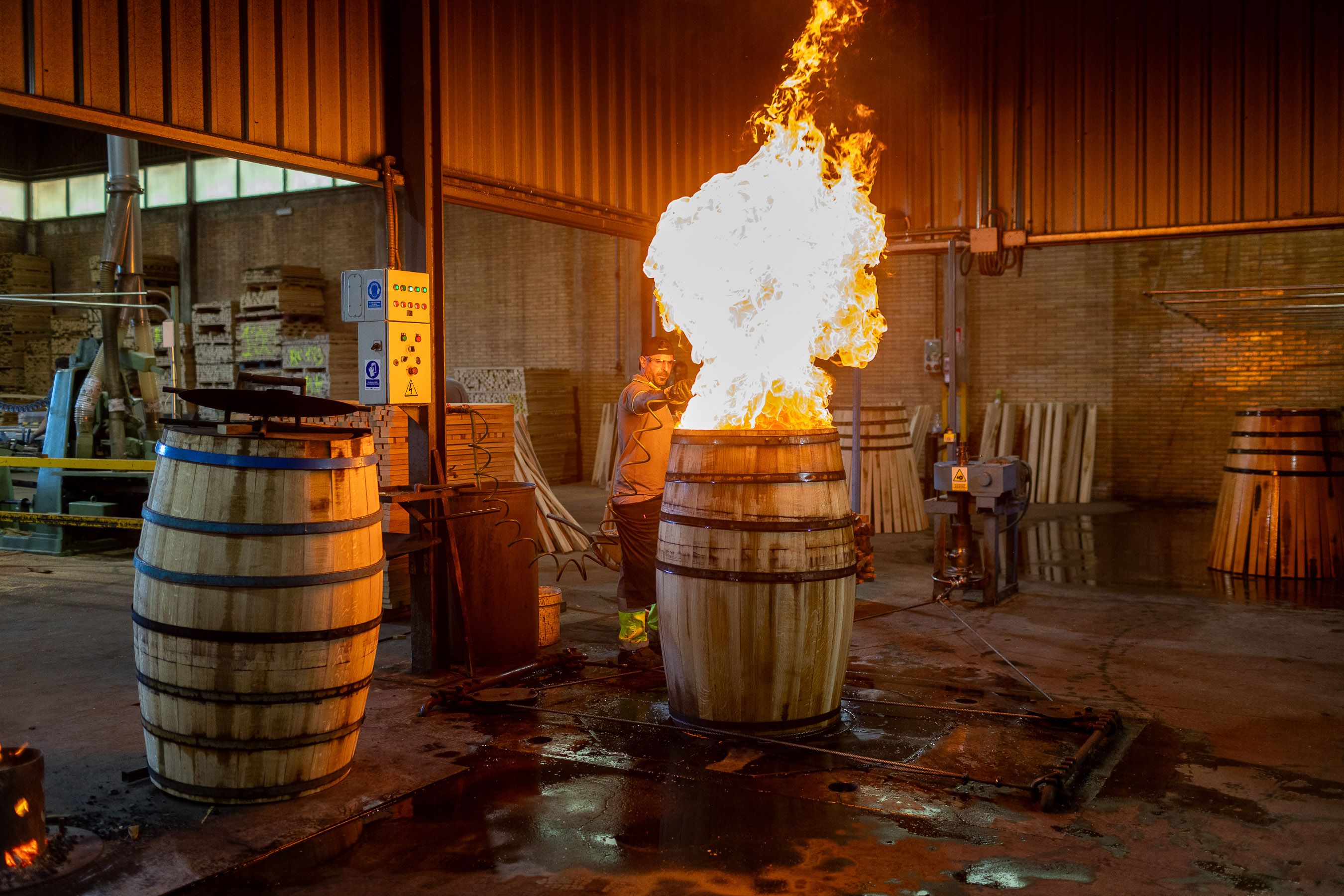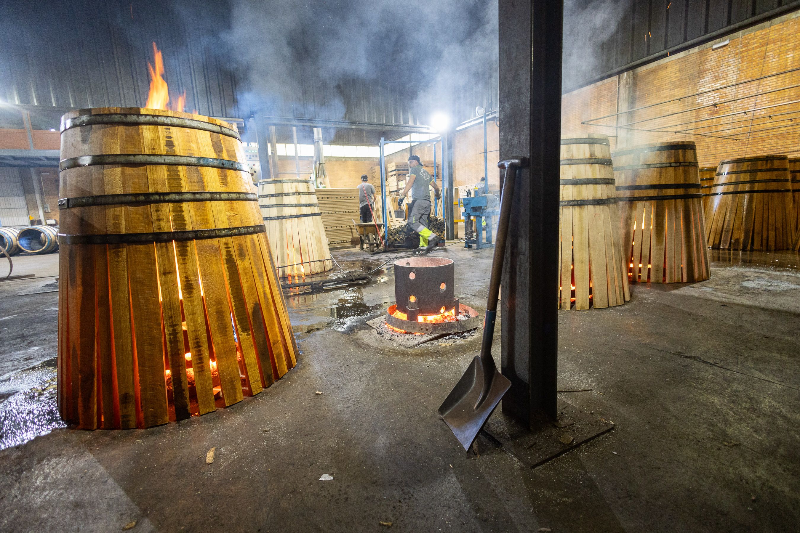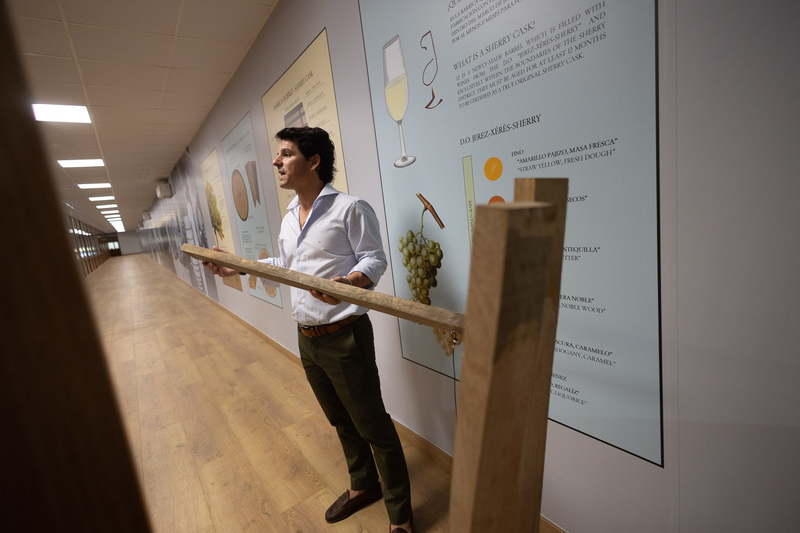 Un tonelero trabaja en el centro visitas de la Tonelería Paez Lobato