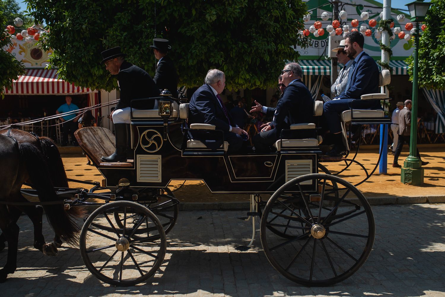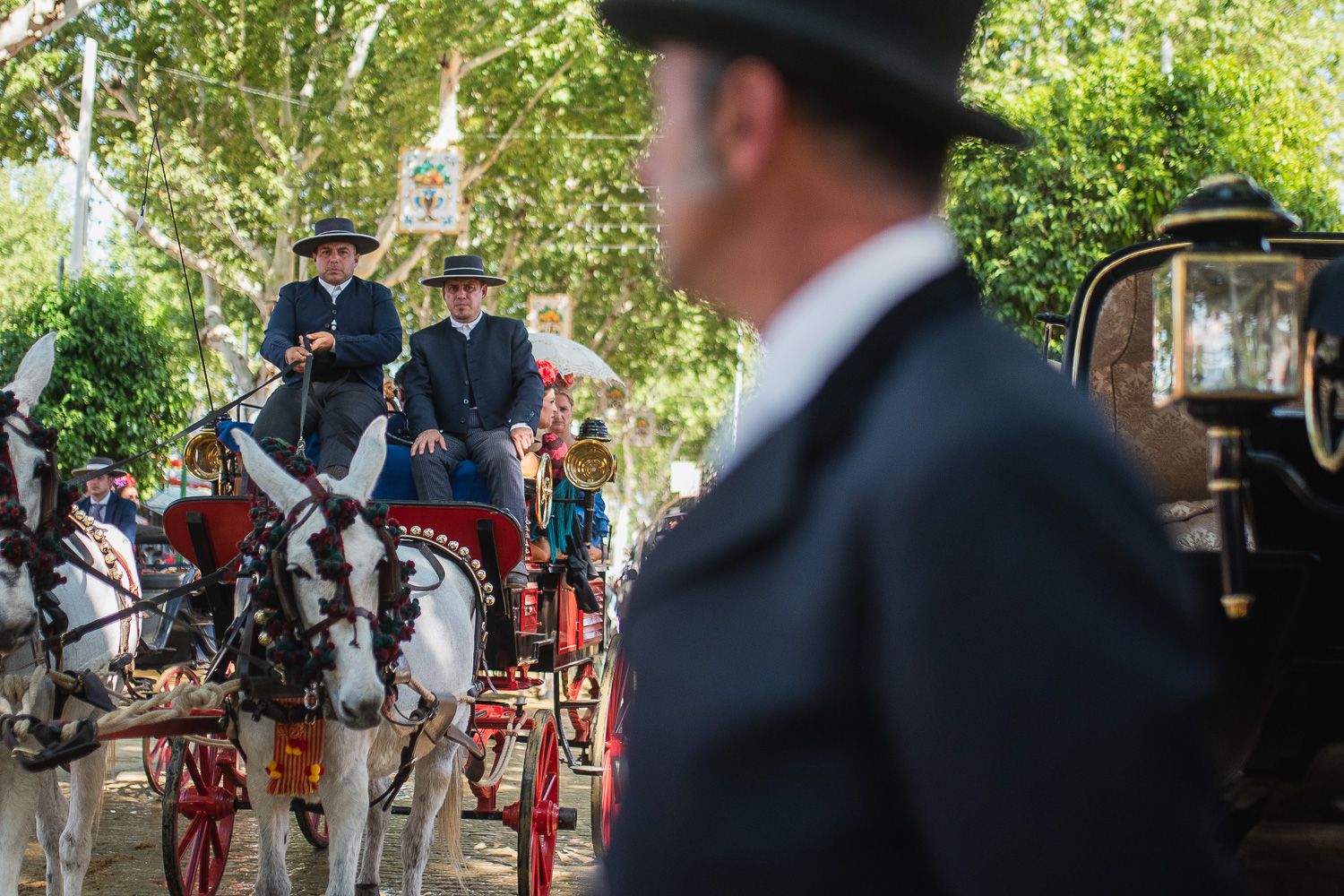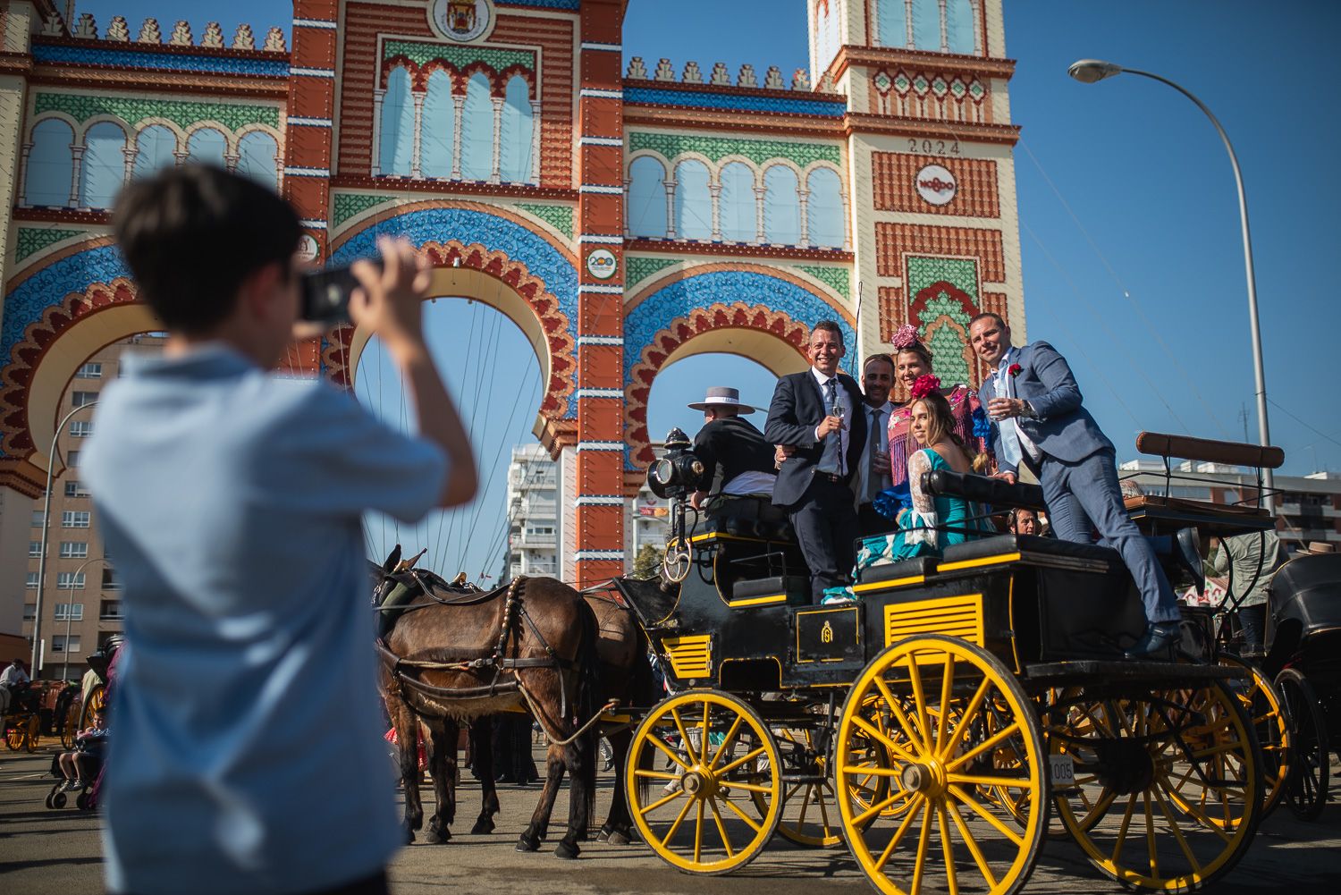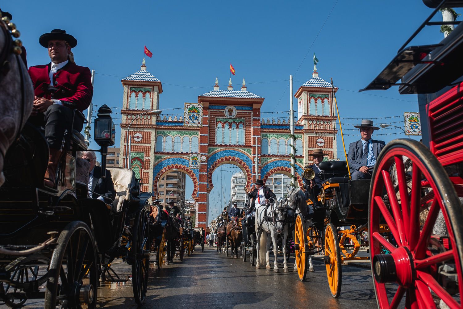 Coches de caballos frente a la Portada de la Feria de Sevilla.