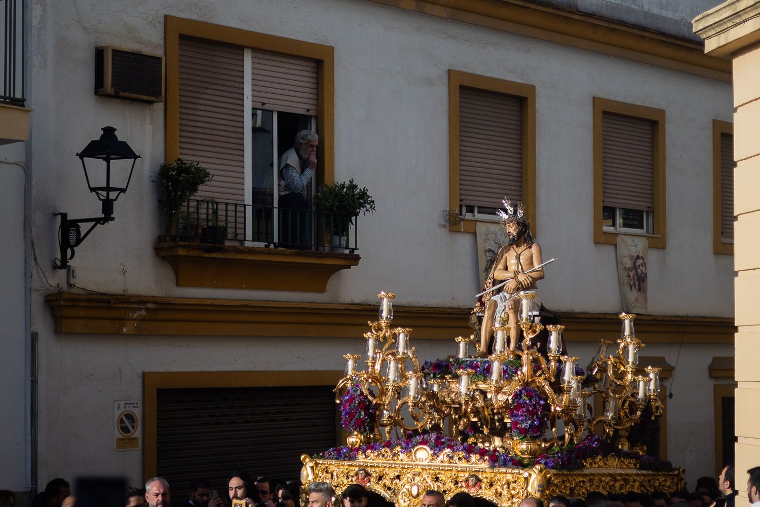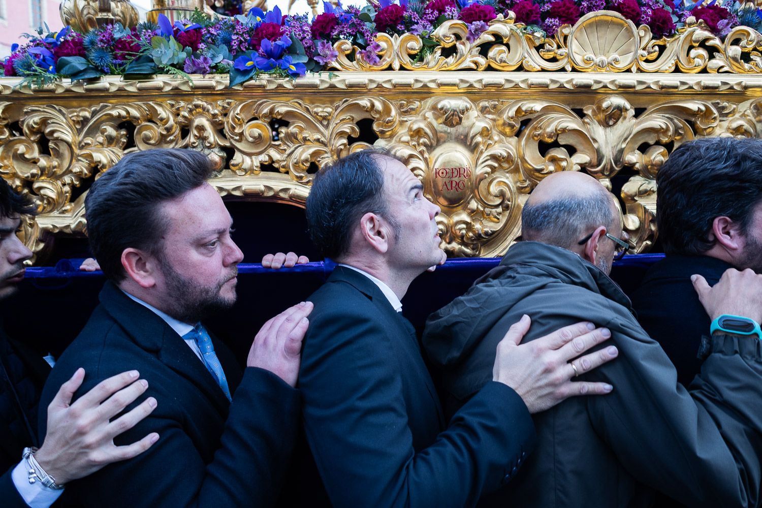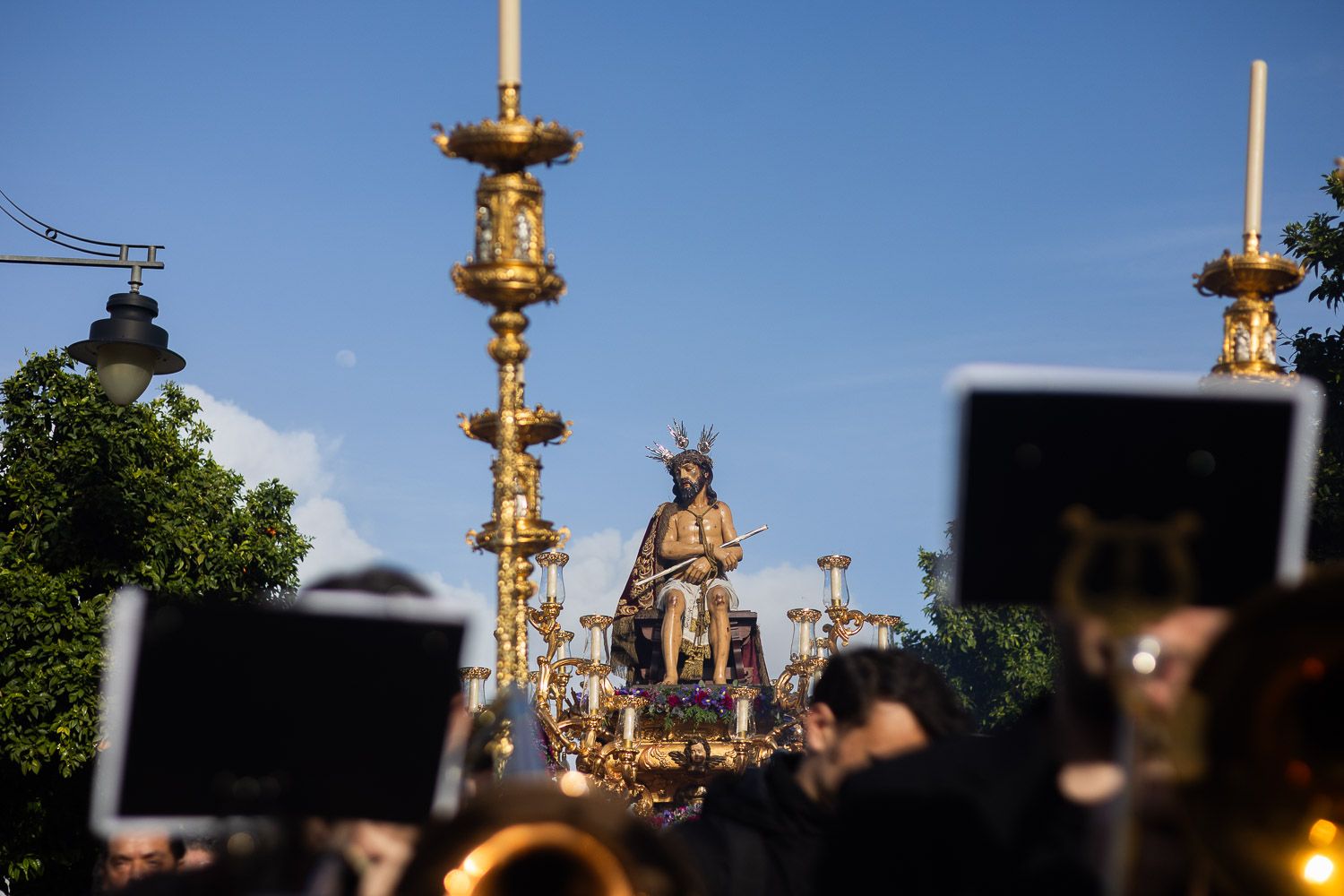 El Señor de la Coronación de Espinas en la plaza Esteve durante el traslado a la Catedral aprovechando el claro.
