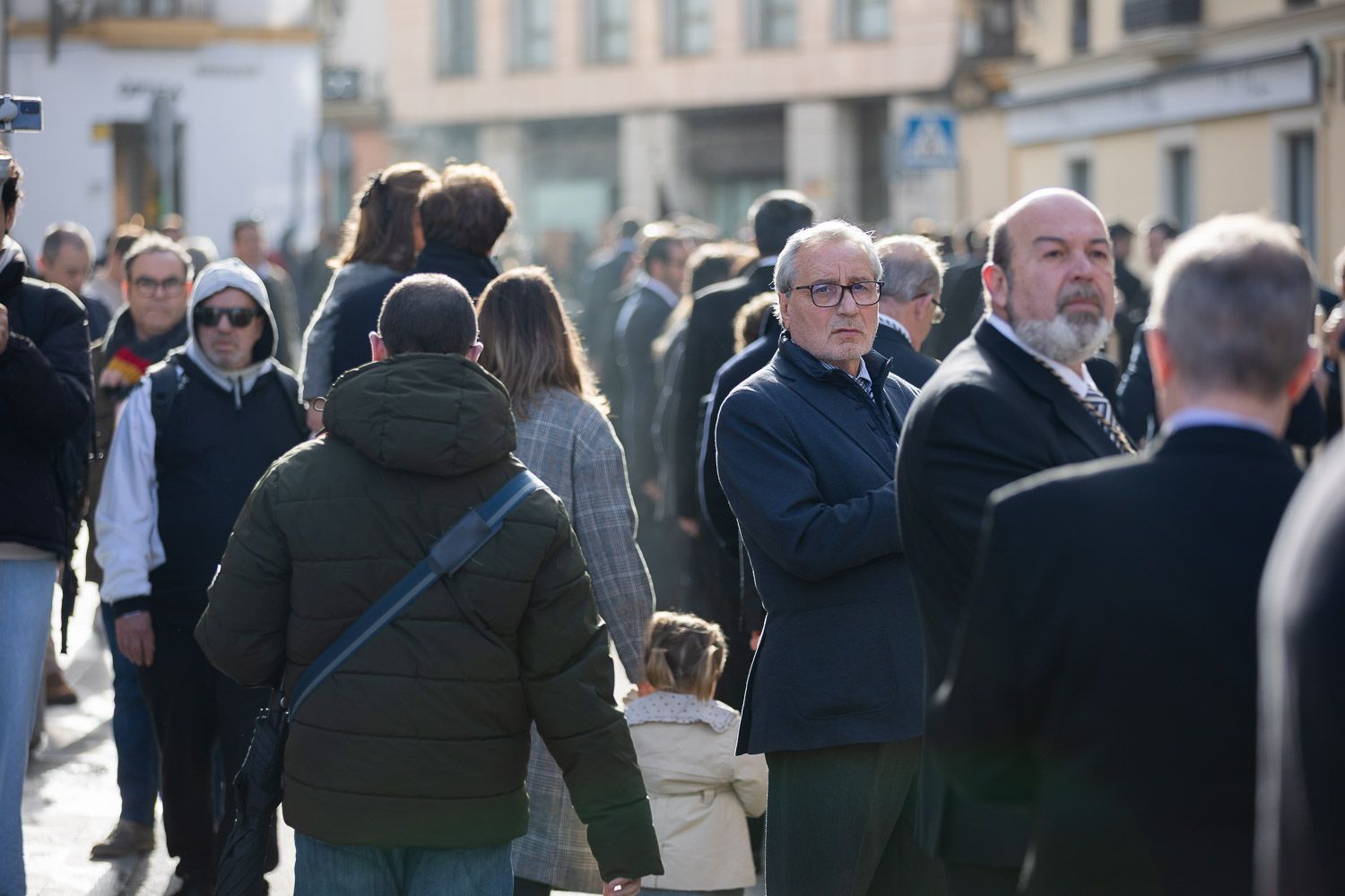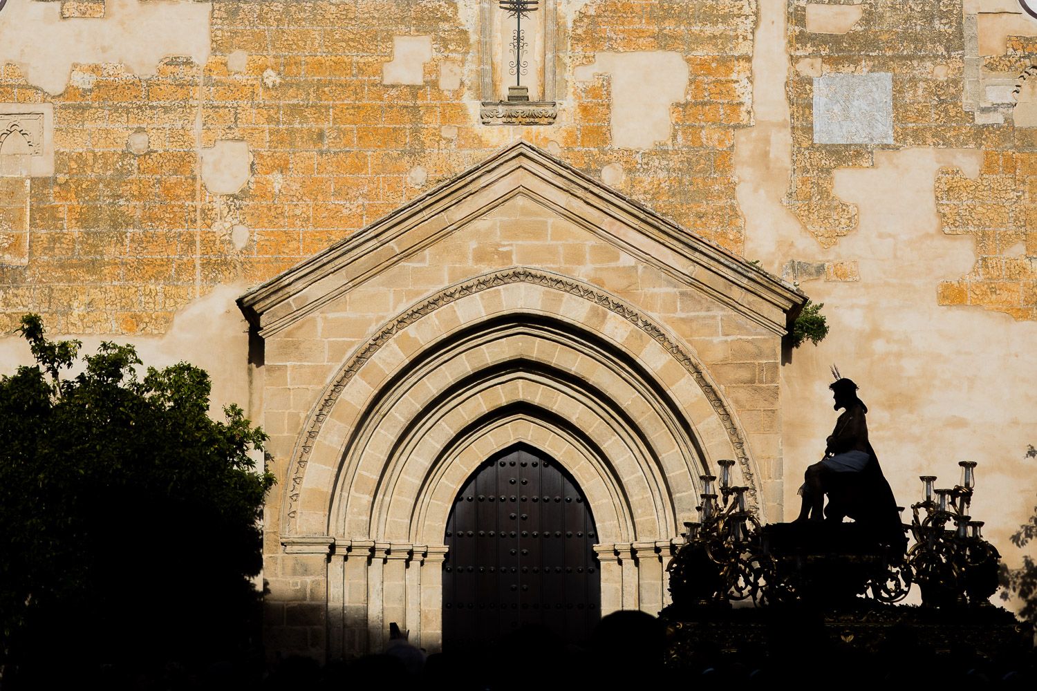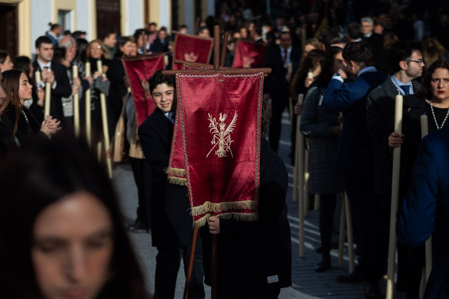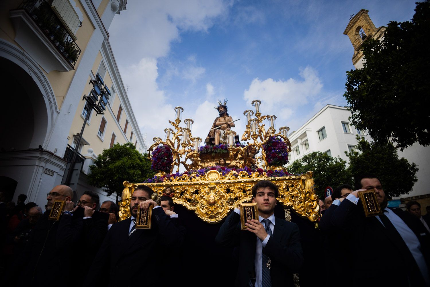 El Señor de la Coronación de Espinas en la plaza Esteve durante el traslado a la Catedral aprovechando el claro.