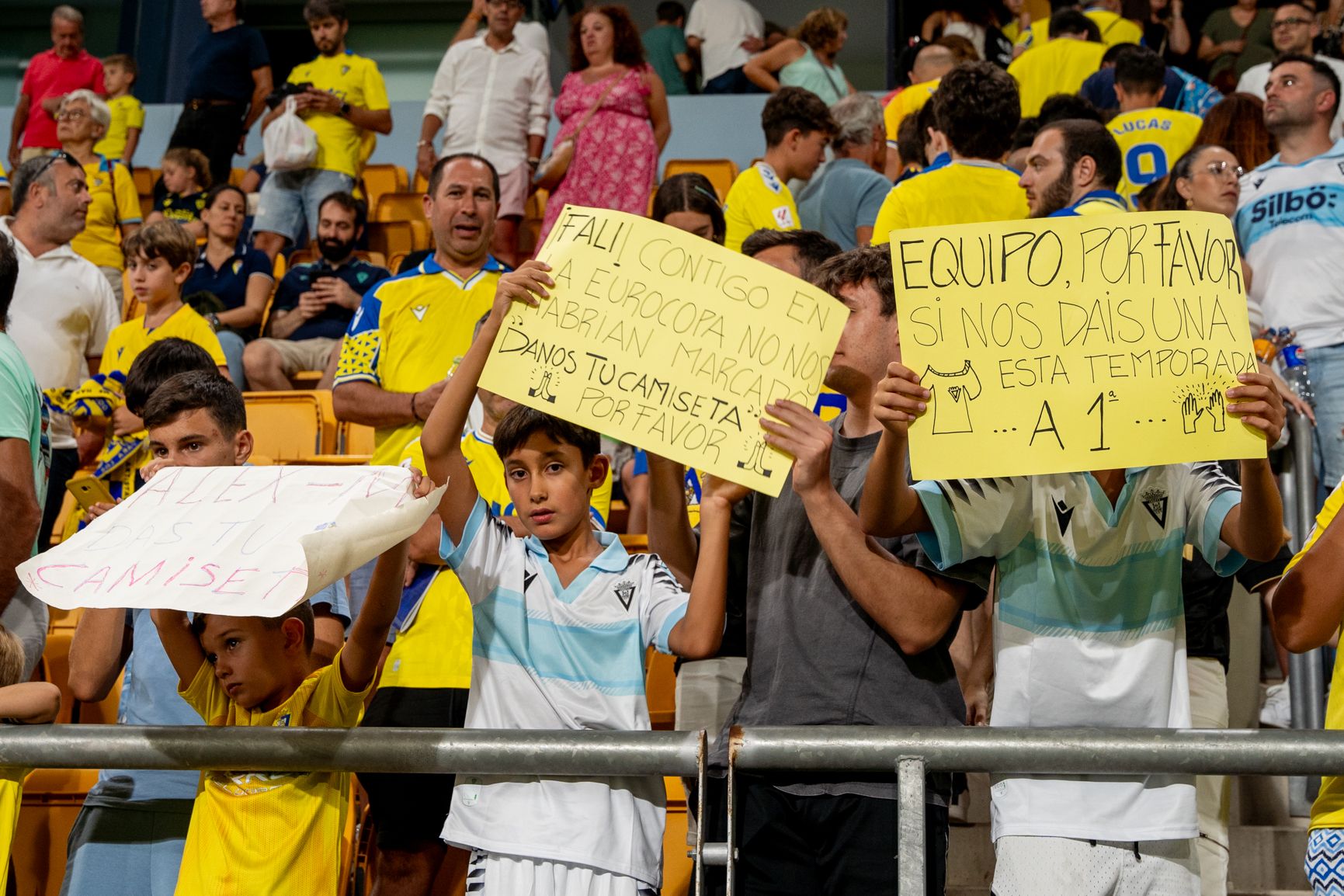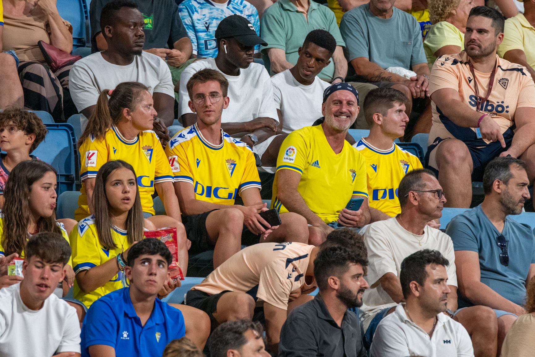 El delantero Chris Ramos se fotografía con el público en el estadio durante el último Trofeo Carranza.