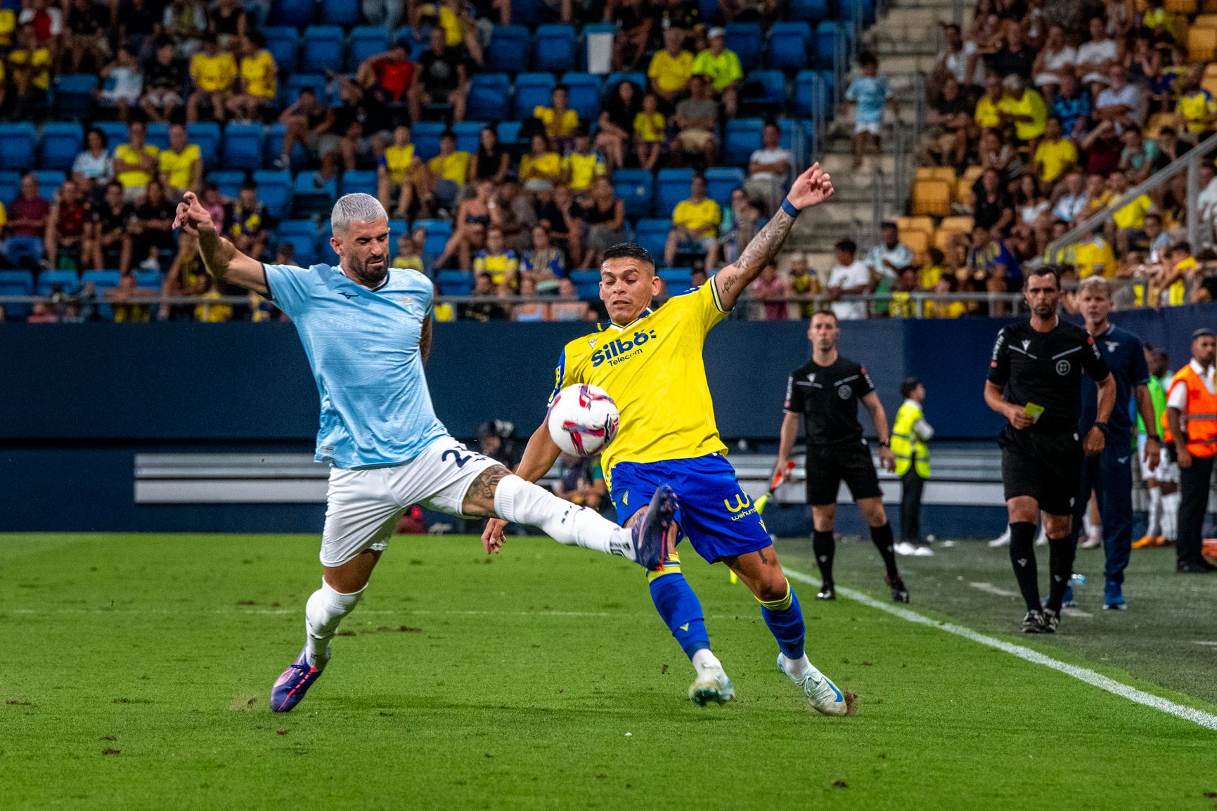 El presidente del Cádiz Club de Fútbol, Manuel Vizcaíno, y el alcalde de Cádiz en el estadio Nuevo Mirandilla este pasado mes de agosto. "Una astracada negacionista" de J.L. Gutiérrez Molina.
