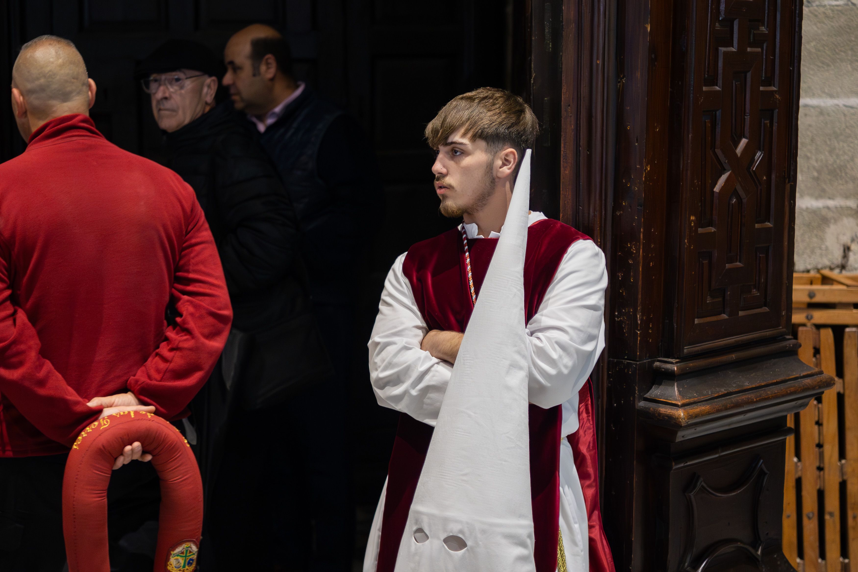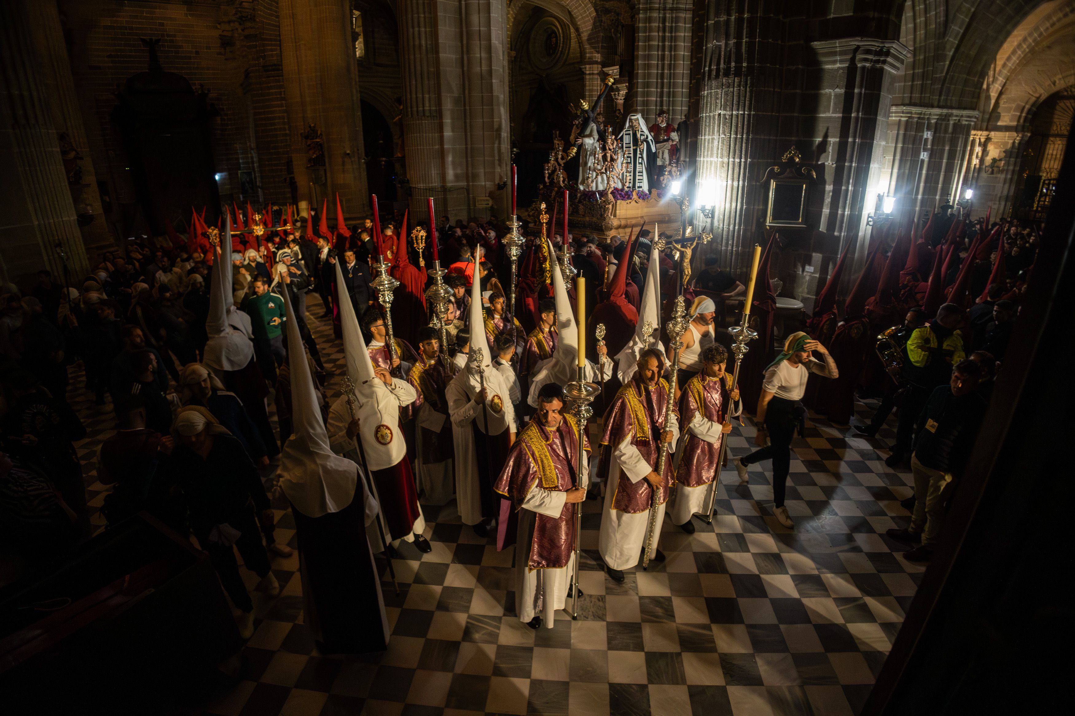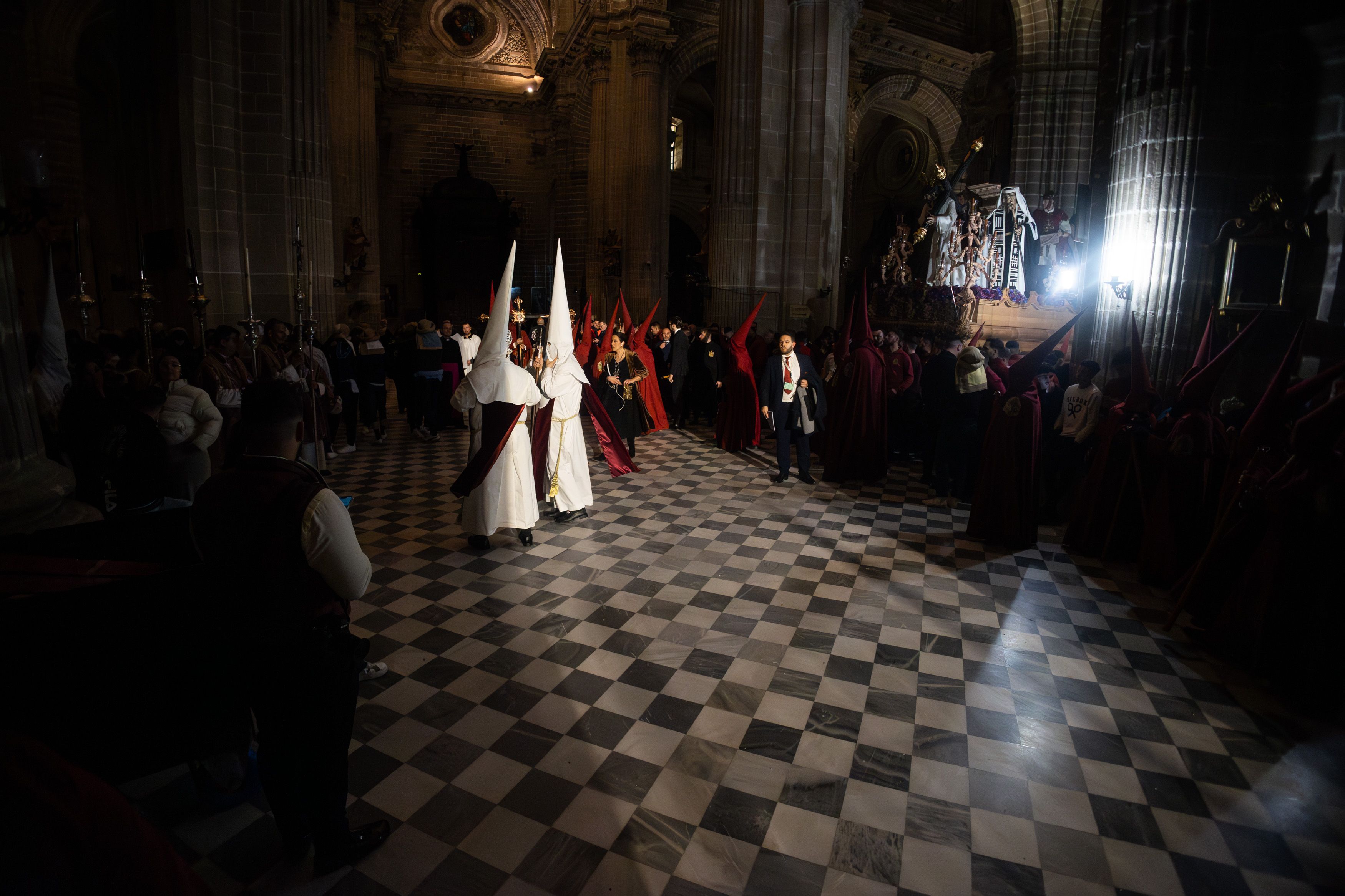 un Nazareno de La Clemencia en la Catedral aguardando la decisión de su hermandad.