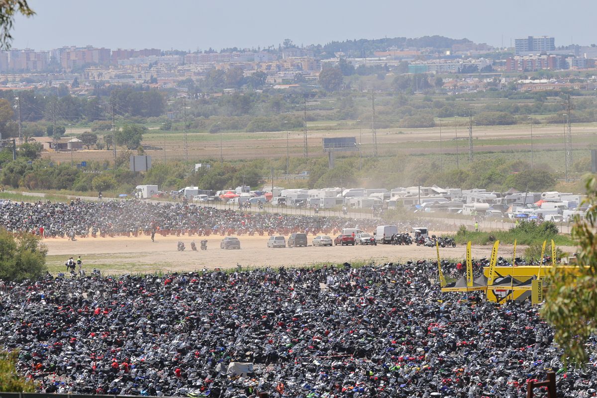 El parking de motos rebosante en Jerez, con más de 224.000 asistentes dejando huella en un Gran Premio histórico