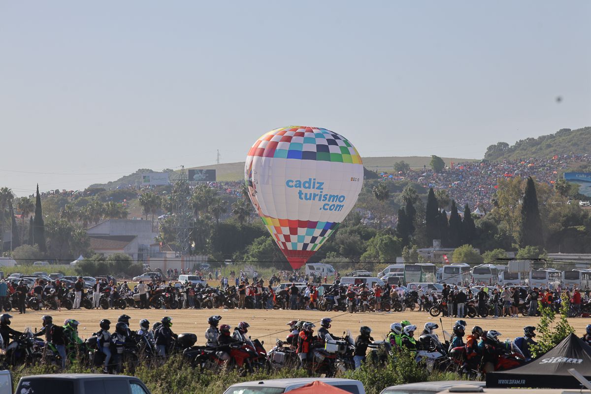 La grada abarrotada bajo el 'ovni' del Circuito de Jerez, símbolo de la pasión motera