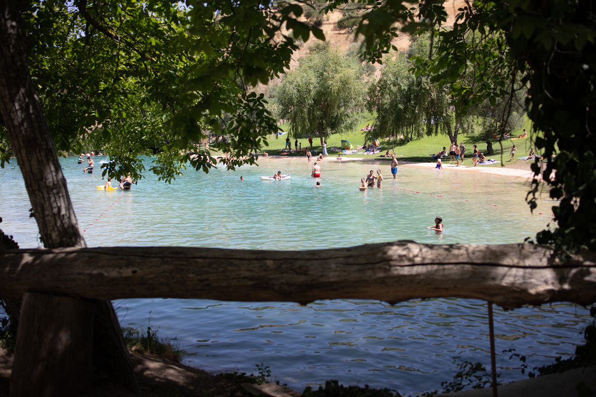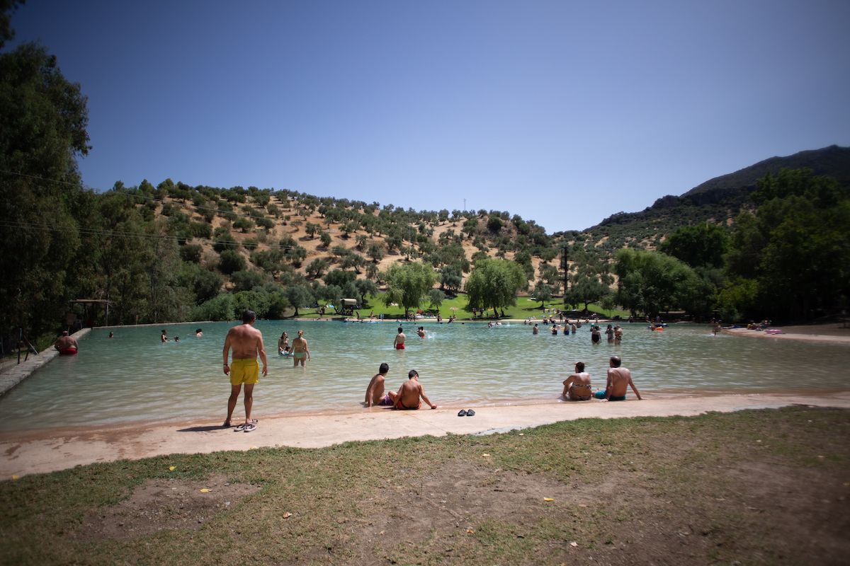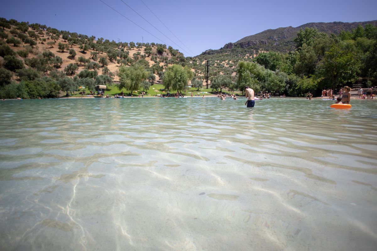 Unos bañistas se dan un chapuzón en la 'playita' de Zahara.