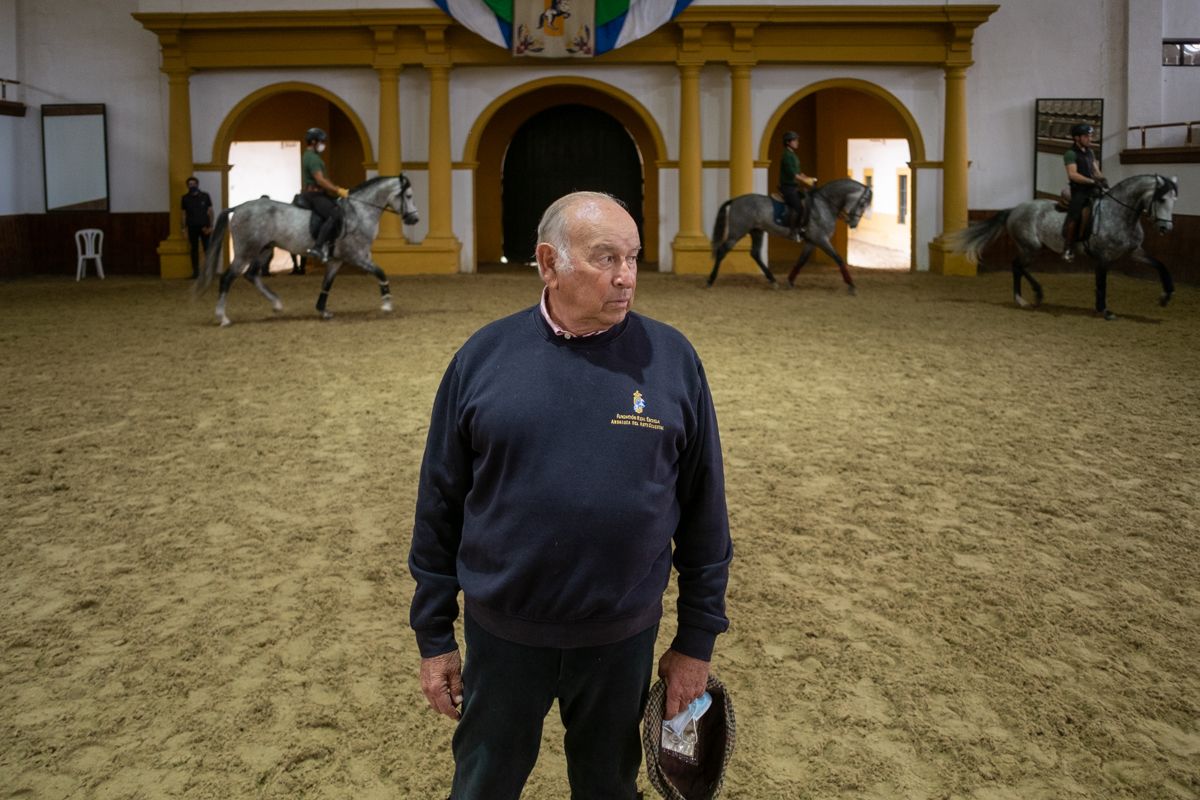 Vi un cambio en las elecciones. Fui a Sevilla. Encontré a este señor tan simpático, tan agradable, Juan Marín. Es un tío simpático. No lo conocía. Me dijeron que iba a pasar por un sitio. Lo encontré. Le dije que me gustaría hablar un momentito. Que podría volver a trabajar, que había trabajado mucho tiempo en la Real Escuela. Él me dijo: “Bueno, pues no me parece mala idea”. Entonces le dije “hombre, si no le parece mala idea, dígame que me vaya para acá y andamos más ligeros”. Al día siguiente estaba aquí, muy temprano. Empieza a entrar mucha gente, Ignacio Rambla, Rafael Soto…: “Hombre, don Álvaro, ¿qué hace usted aquí?”. “Pues aquí estoy, vamos a trabajar”. Enseguida, pum, pum, pum. Y luego un lío, otro lío, y nadie me ha preguntado más.
