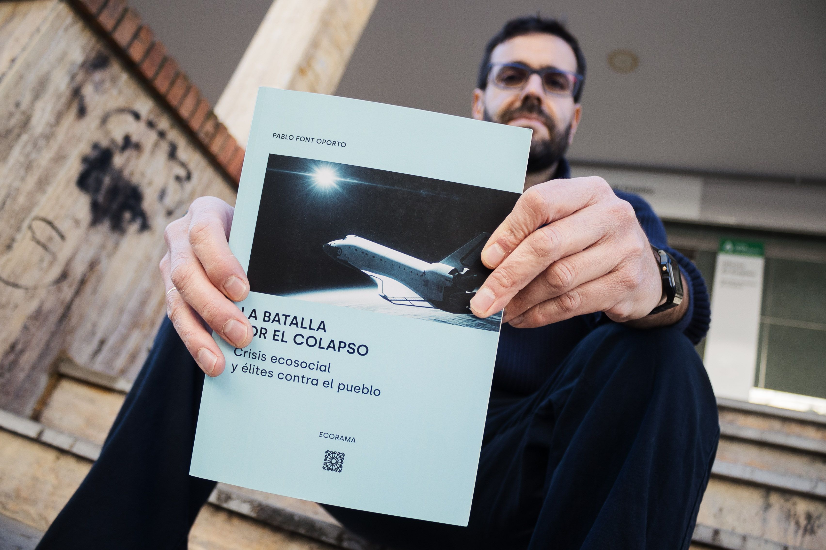 Pablo Font Oporto (Sevilla, 1980) explica en su libro La batalla por el colapso, crisis ecosocial y élites contra el pueblo, las claves para entender la situación actual que vivimos, cómo hemos llegado hasta aquí, o qué se oculta tras las estrategias mercantiles que están recibiendo una lluvia de millones para una discutida y supuesta transición socioambiental.