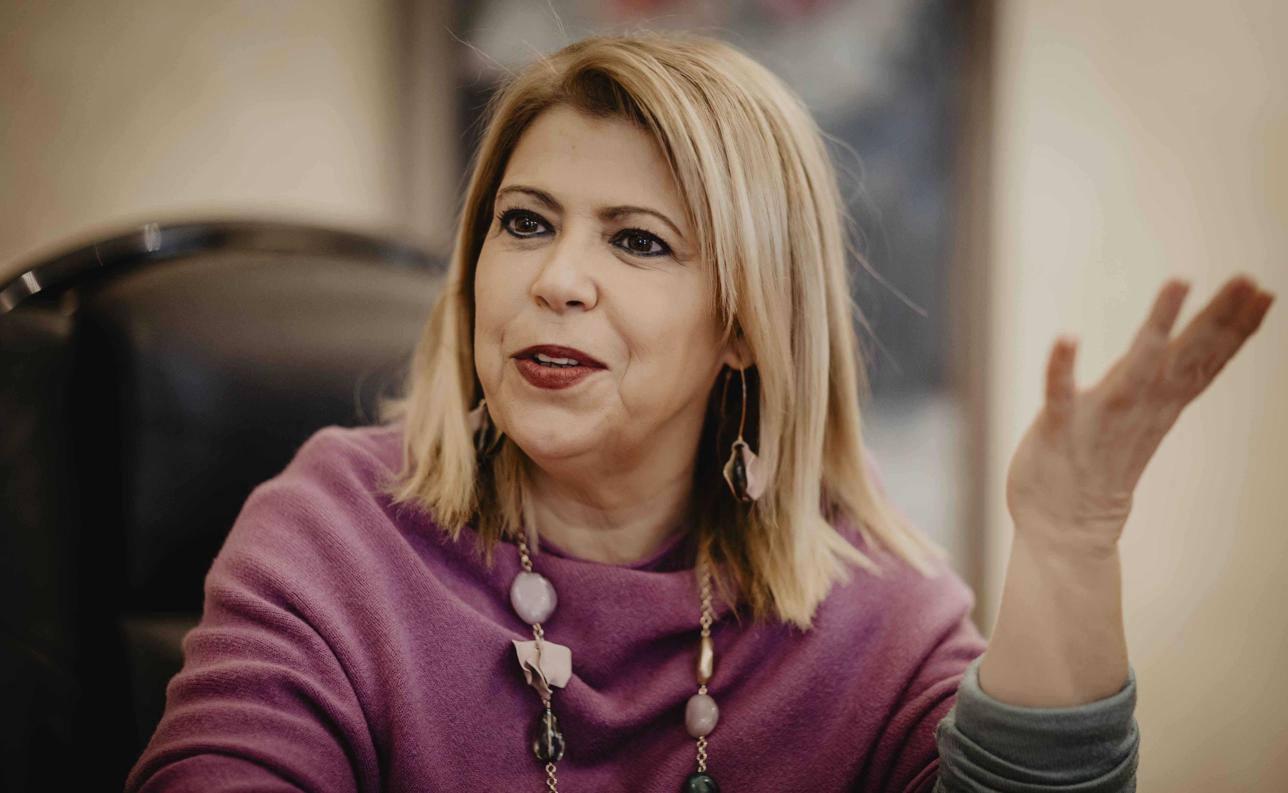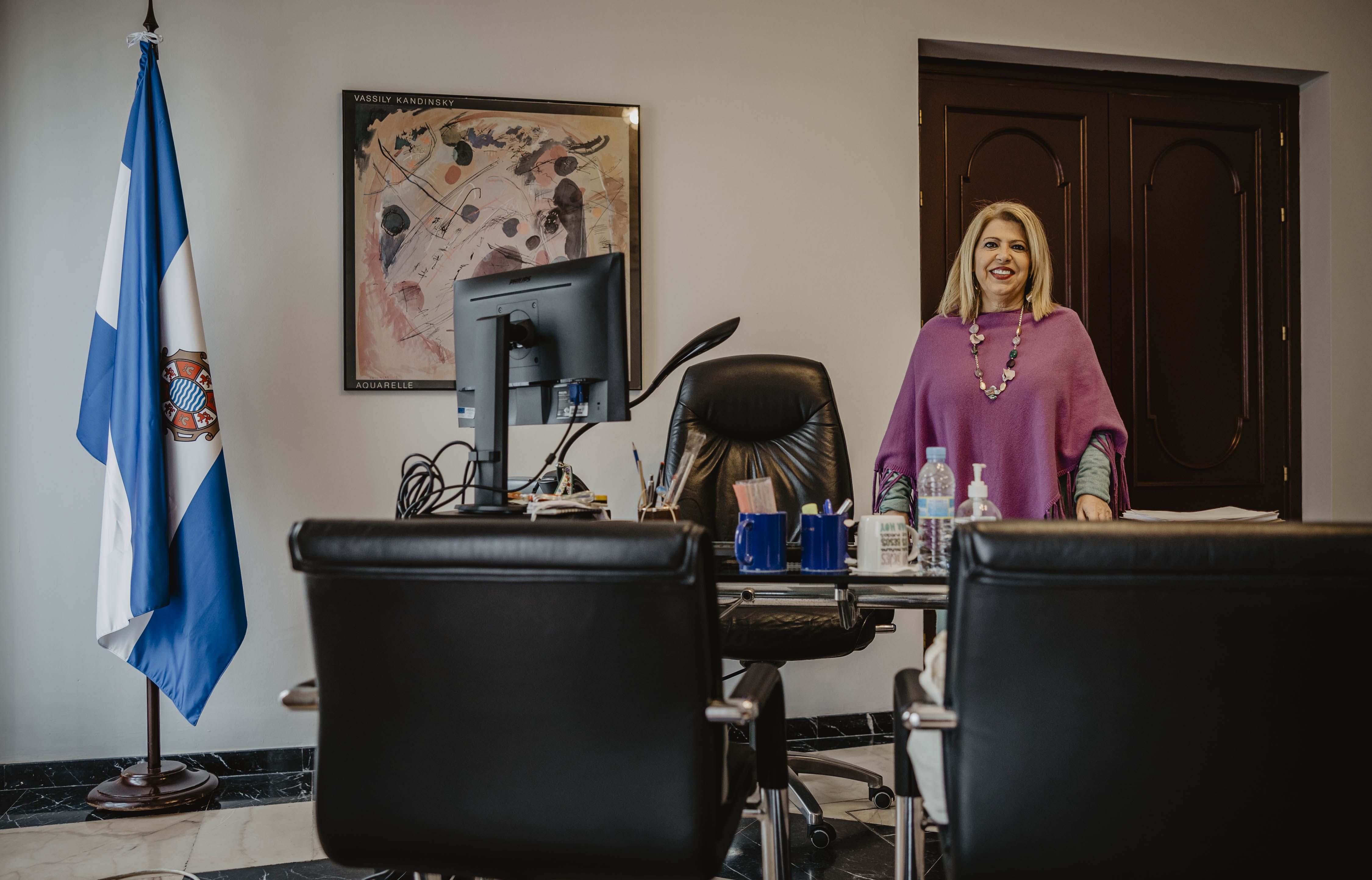 Acaba de llegar a su despacho en la Alcaldía —cambió el imponente despacho de etapas anteriores por uno mucho más recogido y milimétricamente ordenado— desde un acto junto a la antigua Croft, donde "va a haber un desarrollo urbanístico espectacular, con un campus de FP único". Una colaboradora le ofrece un bombón y la munícipe accede. "Apenas he desayunado", reconoce. Pero sonríe.