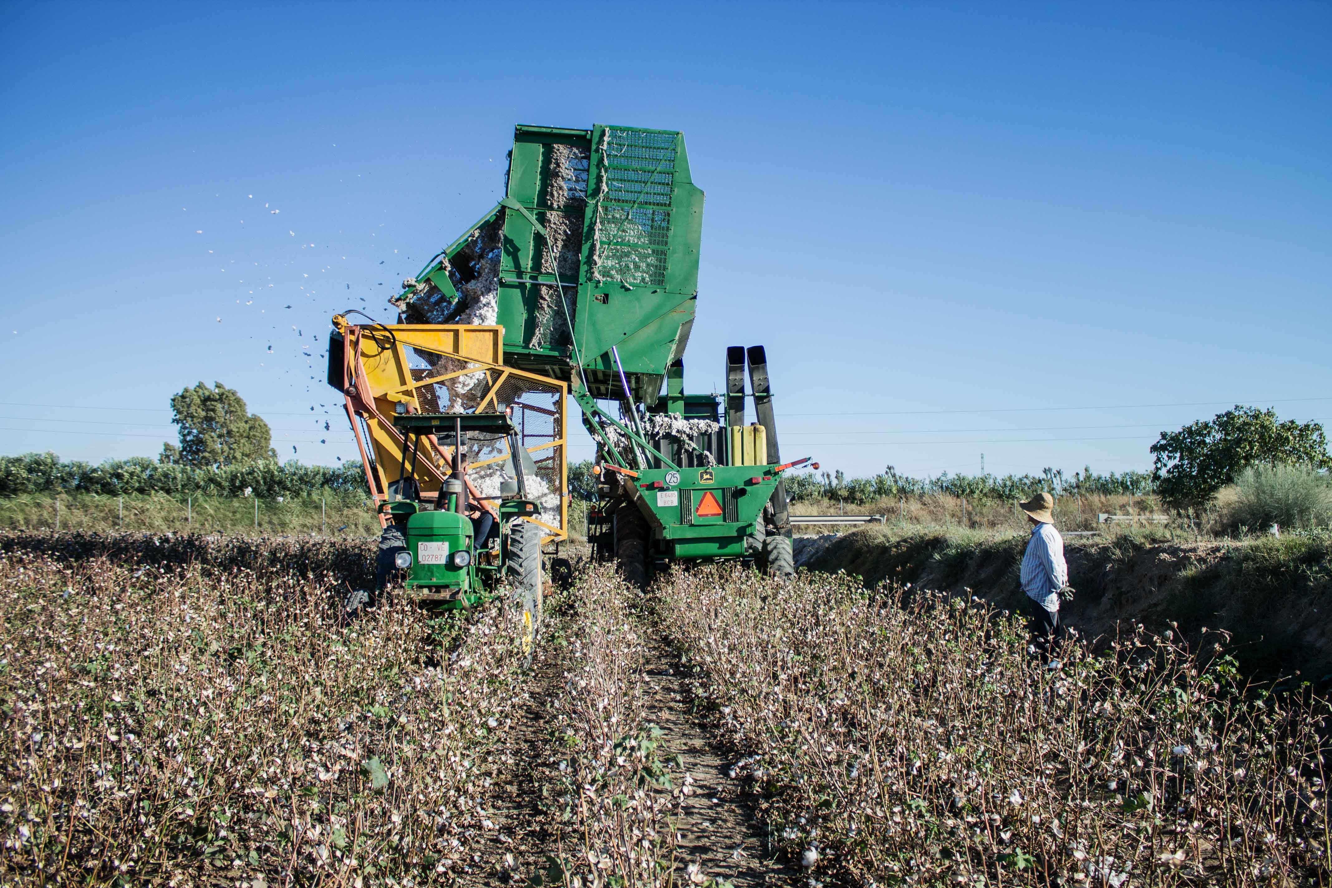Hasta entonces, los agricultores seguirán mirando las nubes con la esperanza de que las gotas no caigan. “Hay veces en las que la gente no ha podido cosechar hasta enero”, comenta el barqueño. En el caso de la parcela de Esteban, en dos horas y media estará limpia gracias a las idas y venidas de Julián, que se ha detenido para descargar el algodón almacenado en la cosechadora, con una capacidad de 3.500 kilos.