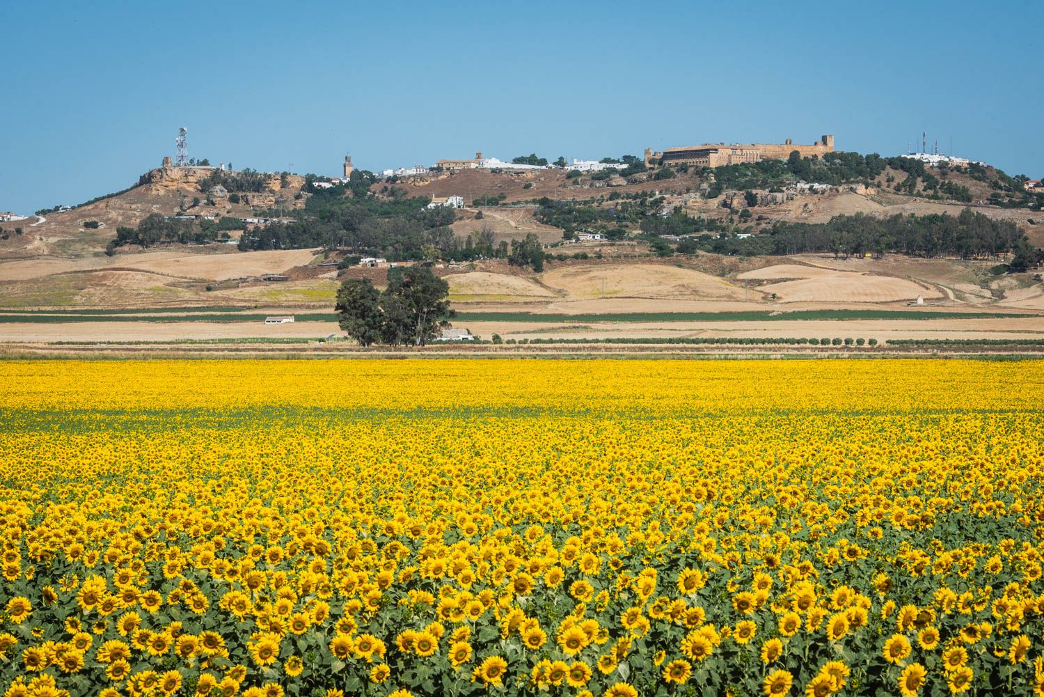 Bajamos camino de Marchena, buscando una imagen única del Alcázar del Reino don Pedro, hoy Parador de Turismo y del escarpe de la milenaria ciudad. Un lugar donde los girasoles, tan bellos como efímeros, se encuentran en su floración óptima. El calor aprieta de lo lindo esta semana, por lo que aquel visitante que quiera verlos en su esplendor debe darse prisa. Es lo que tiene la madre naturaleza.