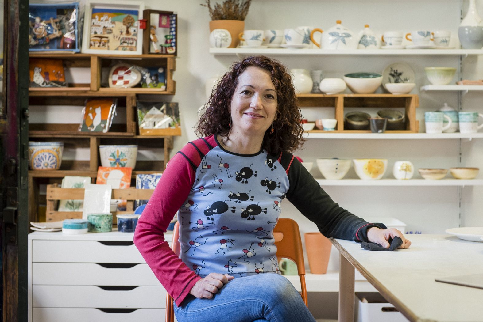 “Me lo tomé como un camino de aprendizaje, hasta que poco a poco la cosa fue a más. Estuve dos años aprendiendo torno con Raquel Eidem, y alternando con prácticas en otros tipos de modelado”, nos cuenta Ana desde el patio de su taller, en el que también trabajan otras dos ceramistas. “Lo mejor de este lugar es que comparto conocimientos con mis compañeras y la experiencia es muy enriquecedora”. “Con la cerámica he ido descubriendo todo muy poco a poco, me he ido dejando llevar. En el taller tengo la capacidad de desconectar cuando entro en contacto con la materia. En cada uno de los procesos he ido creando un mantra, y de la cerámica se aprenden cosas que se pueden aplicar a la vida diaria. La cerámica es algo completamente incontrolable”.