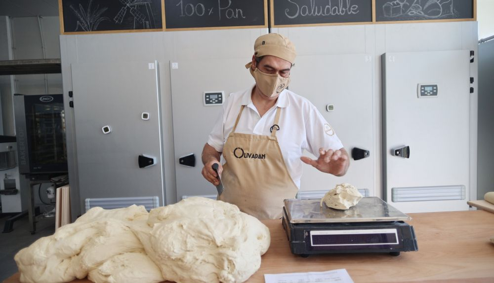 “Hace seis meses me dije que esto había que arrancarlo ya, sí o sí, y con el empuje de mi amigo Paco (Ruiz Salguero), de Horno Artesa, en Arcos, nos lanzamos a ponerlo en marcha”, cuenta a pie de obrador uno de esos hombres que los norteamericanos llaman hechos a sí mismos.“Soy empresario, no soy panadero, aunque me encanta el pan: soy de mojar sopones”, reconoce Oliva, que, entre grúas y panes, tiene a su cargo a 25 trabajadores. ¿Y cómo salta de una de sus grúas a este nuevo sector? Pensó en este nicho de negocio por necesidad personal y de otros muchos conocidos.