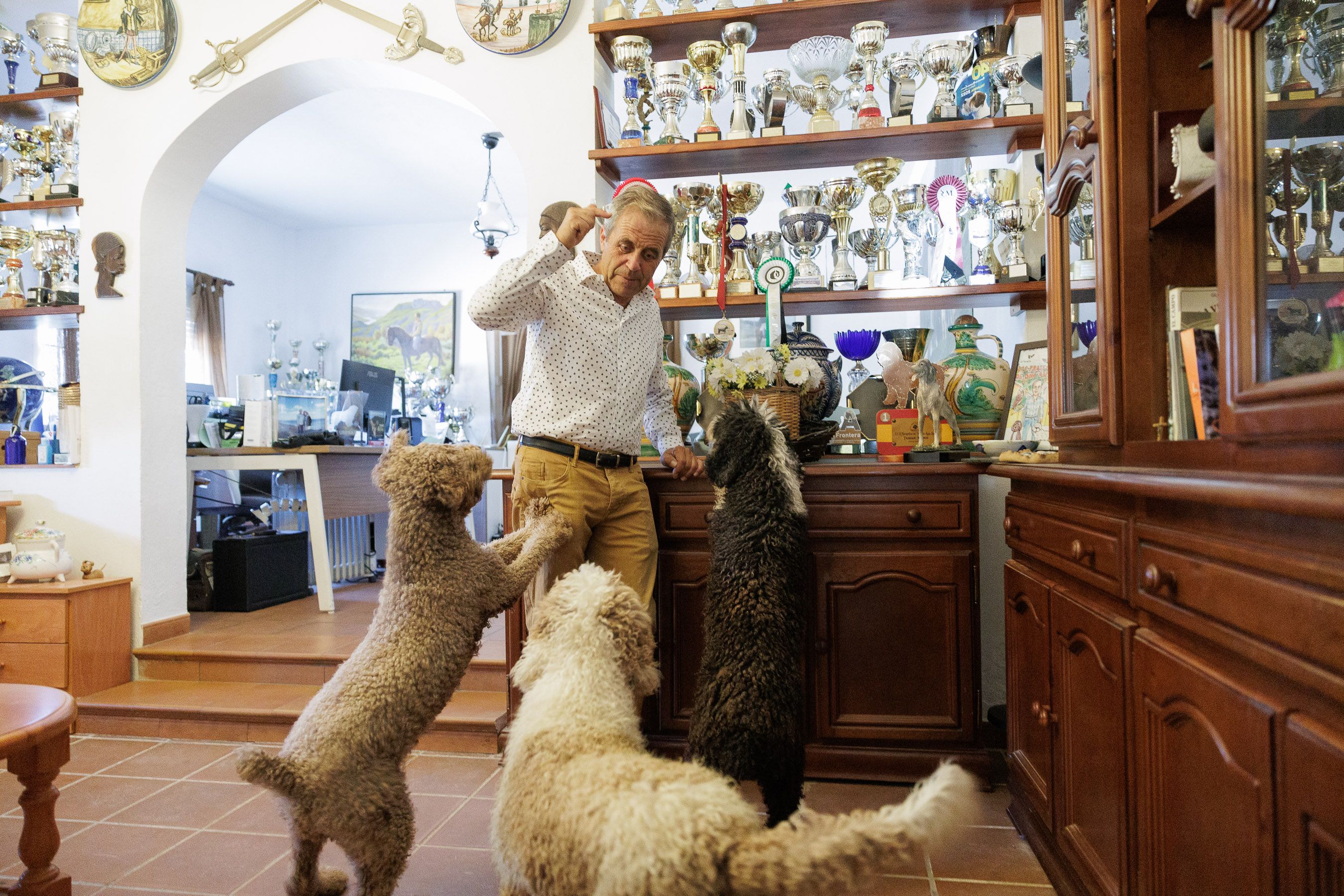 Al visitante le reciben perros de agua. Su dueño es el responsable único y directo de que esa raza autóctona fuera reconocida por el Ministerio de Agricultura, Ganadería y Pesca en abril de 1983.