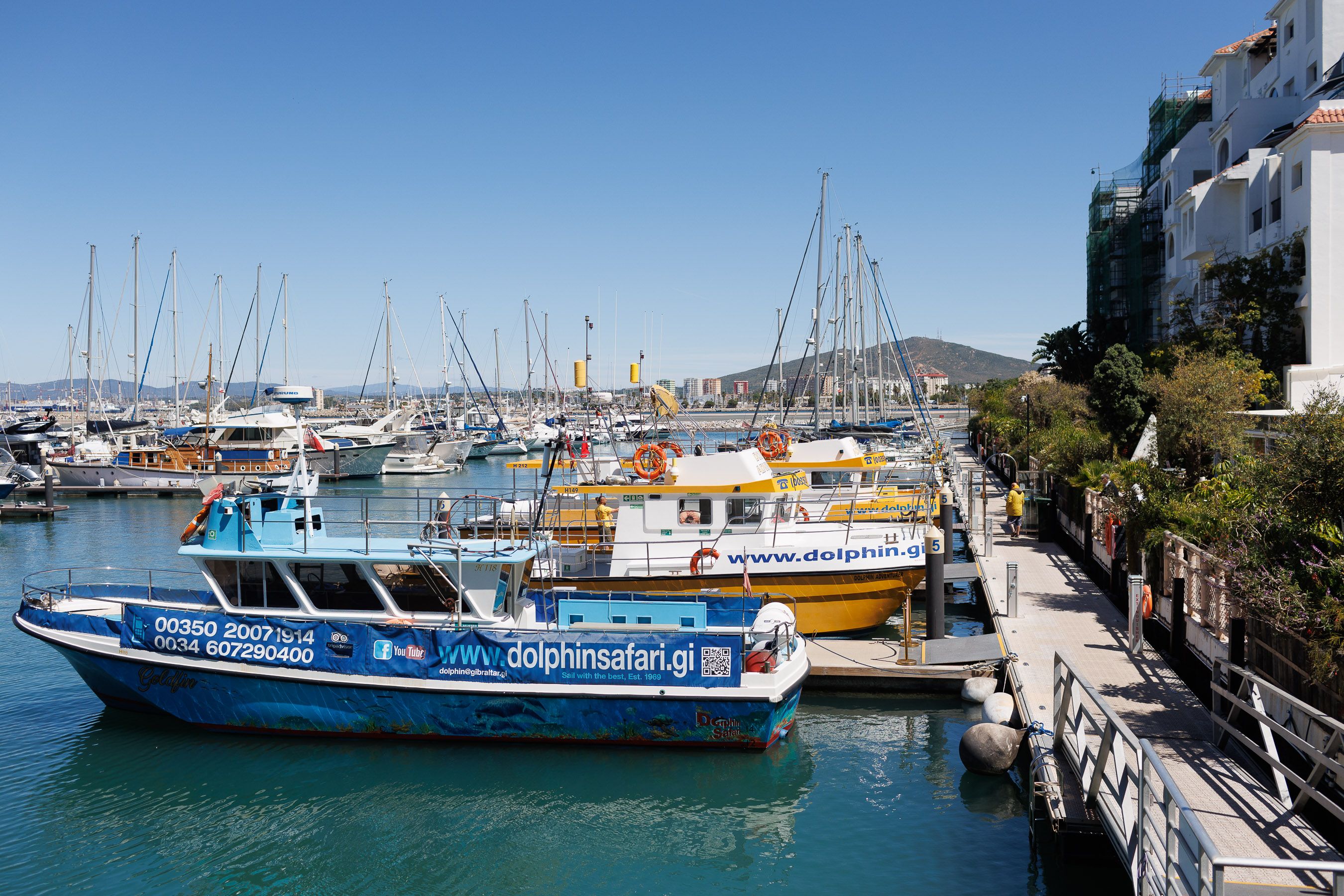 El turismo y el ladrillo son dos sectores muy pujantes en la Roca. El día está tranquilo para los taxis turísticos y para la oficina de turismo en la plaza de John Mackintosh. En la marina, el casino parece cerrado mientras algunos ya empiezan a tomar posiciones para la comida. Hay un teleférico que por 19 libras por persona te sube a lo alto del Peñón a ver a los famosos macacos de Gibraltar y a divisar cómo la privilegiada posición geofísica de este peñasco regala el Norte de África y el Sur de Europa en el mismo vistazo.