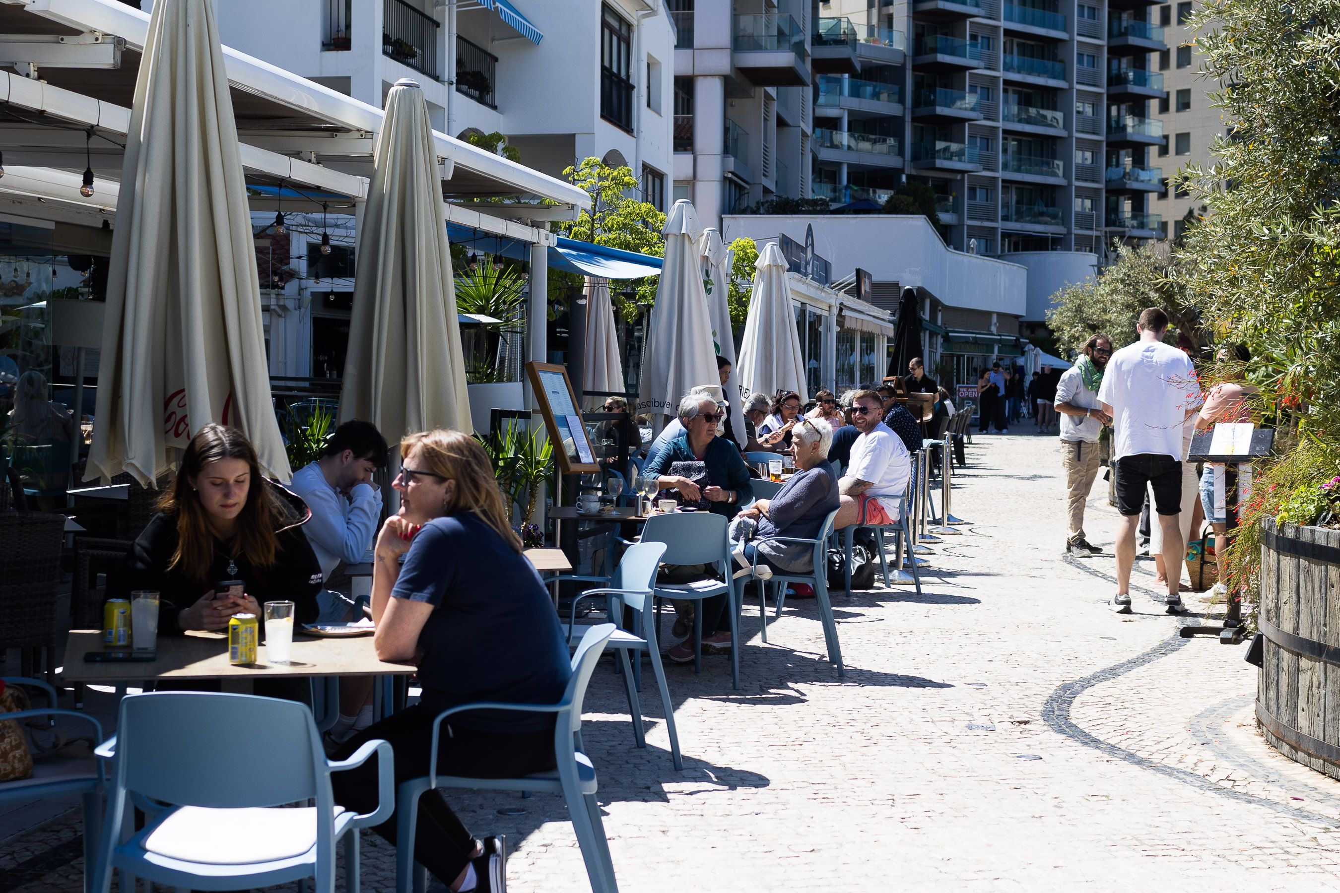 A las diez de la mañana, en Casemates Square, el salón noble gibraltereño, con menos decibelios que a unos kilómetros en La Línea, está todo el mundo en sus puestos. Los turistas que deambulan Main Street arriba, el cantante callejero que entona una de REM, el personal de comercios y hostelería, limpiadoras y operarios, agentes de policía, autobuseros, taxistas…, y otros muchos trabajadores visibles e invisibles, muchos de ellos en sus escritorios en oficinas y ante pantallas de ordenadores que conectan veloces con todo el planeta.