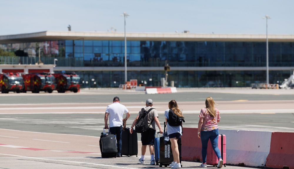 Algunos de los viandantes cargan con trolleys de camino al Aeropuerto gibraltareño, cuyo uso compartido con España, entre otras medidas, forma parte de la propuesta que quiere encajar a este pedazo de tierra en la Unión Europea tras la salida de Reino Unido hace cuatro años por el Brexit.