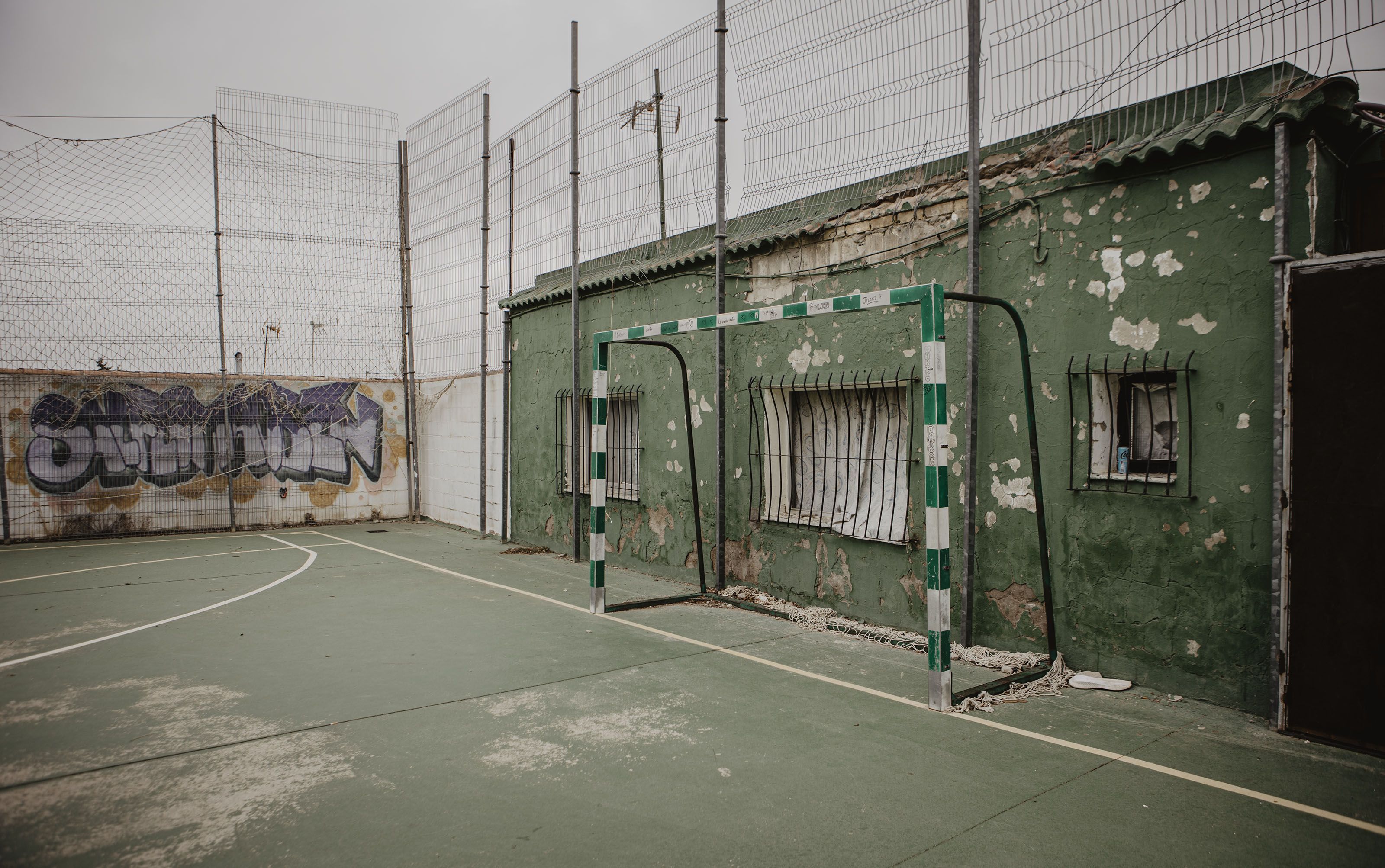 Las porterías “están rotas y no están ancladas”, carecen de redes y suponen un peligro para los jóvenes que juegan partidos en este espacio. “Su arreglo estaba previsto, pero llevan años sin hacerlo. Esa malla está rota y las pelotas se embarcan en la casa del vecino”, explica apuntando al enorme hueco.