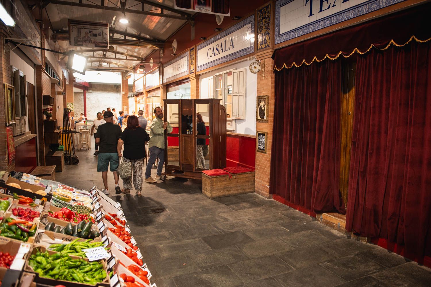 El Mercado de Triana es uno de esos mercados que mantiene parte de su historia y sigue albergando mucha vida en sus mostradores. Sus calles fueron testigo hace doce años de una idea que ahora es realidad y que comparte el mítico espacio que une el Altozano con la calle Castilla. Entre frutas, quesos, verduras y carnes se encuentra Casala, una sala de teatro que si no es la más pequeña del mundo, poco le falta.