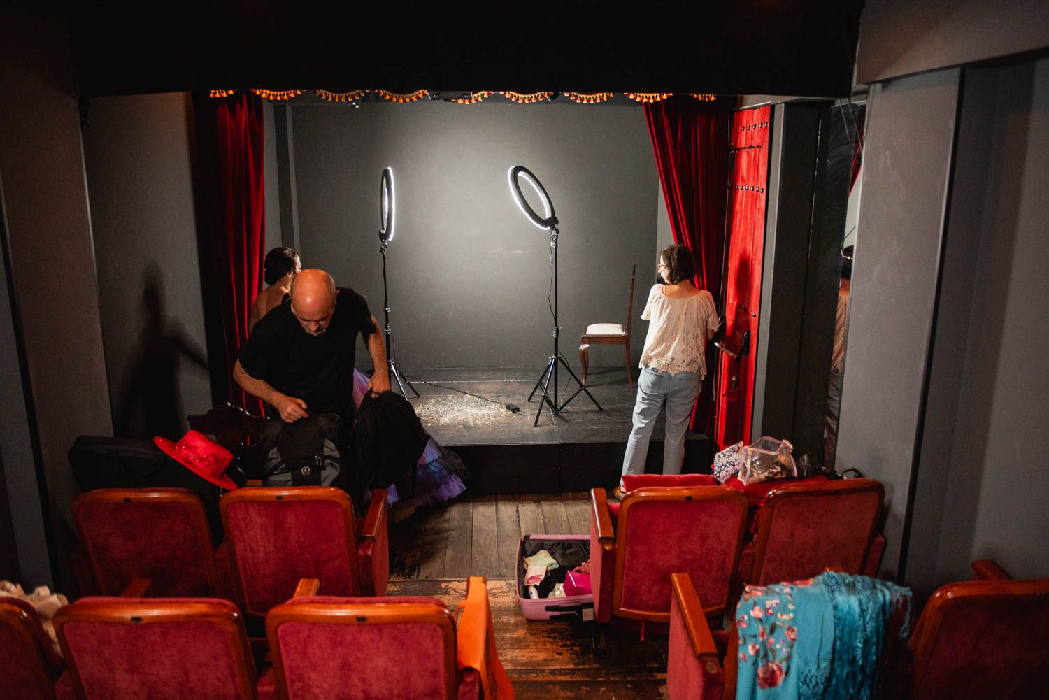 No sólo hay que tener una sensibilidad especial para sentarse en estas butacas, sino también para subirse a su escenario. "Es un formato que no todo el mundo puede hacer. Hay obras que se hacen específicamente para este lugar y pocos más", comenta. Como ejemplo están Sepelio, Triana ha muerto o Macarena y Rocío, las dos obras que se representan actualmente los sábados. "Los intérpretes son gente que disfruta haciendo cosas diferentes. Aquí si representas que estás triste te tienen que brillar los ojos, o no se lo cree nadie", explica por la cercanía entre los actores y el público. "En la última butaca se escucha la respiración. Te das cuenta de que te está contando verdad".