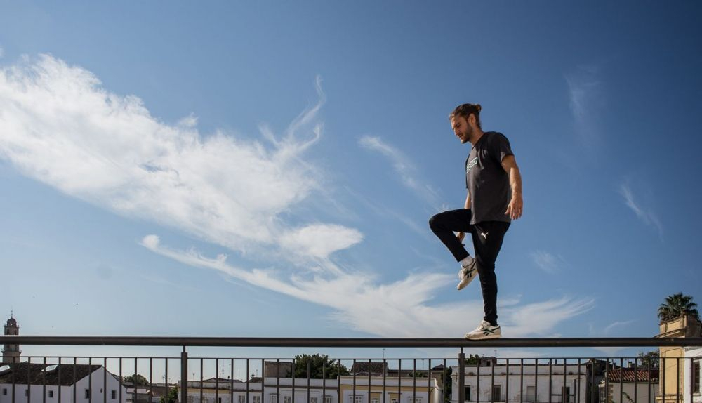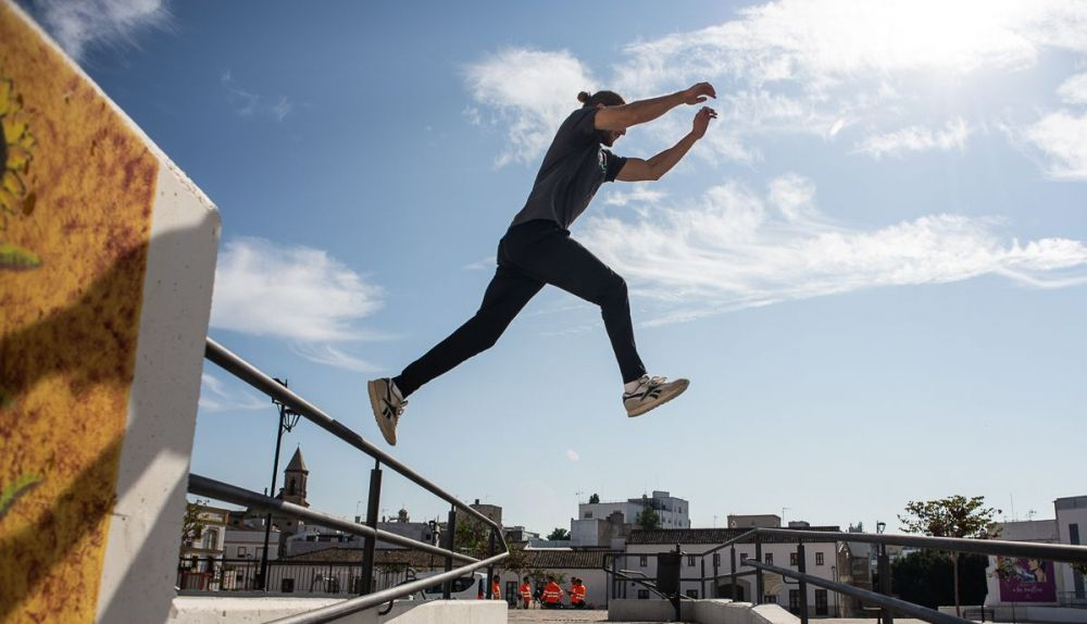 Para adentrarnos más en este emocionante mundo de los saltos, este joven jerezano de 28 años ofrece una pequeña exhibición para lavozdelsur.es. El resultado es espectacular, aunque confieso que en el primer repecho que hizo de un muro pensé que se partía la crisma. Después fuimos acostumbrando el cuerpo a esa adrenalina de un riesgo muy controlado. "Hay vídeos, películas y noticias que confunden el parkour con otras disciplinas y vertientes más peligrosas, pero los movimientos del parkour son eficientes y seguros. Se trata de hacer las cosas con cabeza".