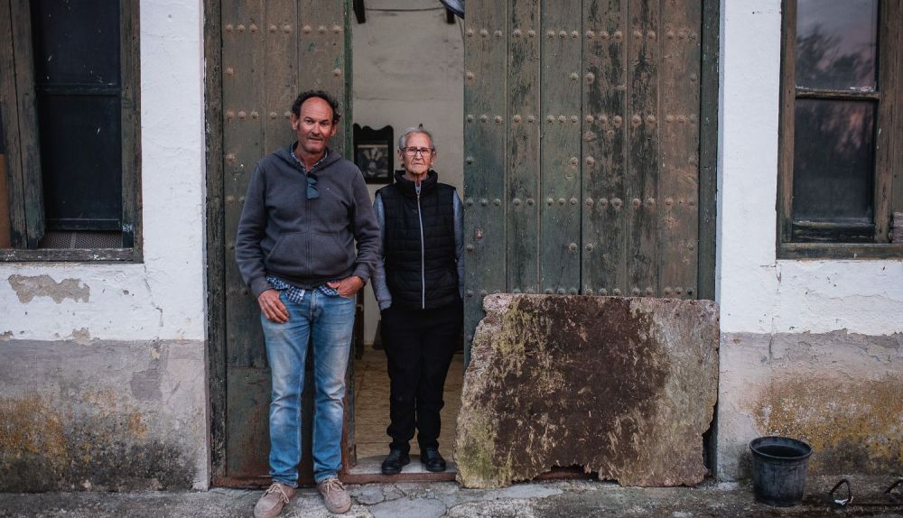 La casa da muestras de haberse entretenido con la misma tarea primorosa muchas otras tardes. Solamente al oscurecer llega su hijo, Francisco López (56 años), porque “no me gusta dejarla aquí sola y me la llevo a casa”, en Lebrija. “Si fuera por mí me quedaría aquí siempre, como hasta que se murió mi Juan”. Hasta el año 2015, el matrimonio —que contaba con varias parcelas de cultivo— seguía viviendo aquí, y desde entonces Ana se viene a diario, sin que le importe la soledad. Le hace compaña el pequeño televisor encendido e ignorado, testigo del mundo exterior, pero sobre todo una colección de santos en forma de cerámicas, pinturas o estampas que pueblan el saloncito donde hace vida Ana. “Yo nací en Los Palacios y me vine aquí con 12 años”, cuenta ella. “Apenas fui al colegio allí, y cuando llegué aquí yo ya era una mujercita que sabía hacerlo todo en la casa”.
