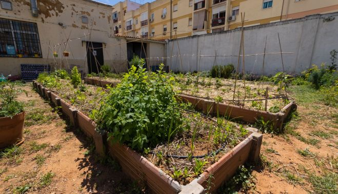 Todo comenzó en 2020, en pleno confinamiento, cuando se montaron los bancales y a continuación se retomaron los cursos de verano. Pronto se unieron los colectivos de la zona: Centro de Acogida Municipal (CAM), Centro de Acogida Miguel de Mañara, Centro de Día Macarena, el colegio de niños y niñas con necesidades especiales del barrio, las asociación de vecinos y Fundación Doña María.