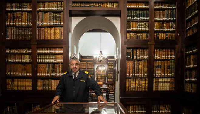 En la biblioteca del observatorio, que cuenta con más de 30.000 volúmenes, siendo una de las bibliotecas científicas más importantes del país, aún puede encontrarse un ejemplar de la primera edición del Almanaque náutico, que data de 1792. Junto a él, reposan obras tan valiosas como un ejemplar de la primera edición del libro de Copernico, “en el que aparece por primera vez un dibujo que explica el giro de la Tierra alrededor del sol”, precisa el capitán de navío Antonio Pazos.