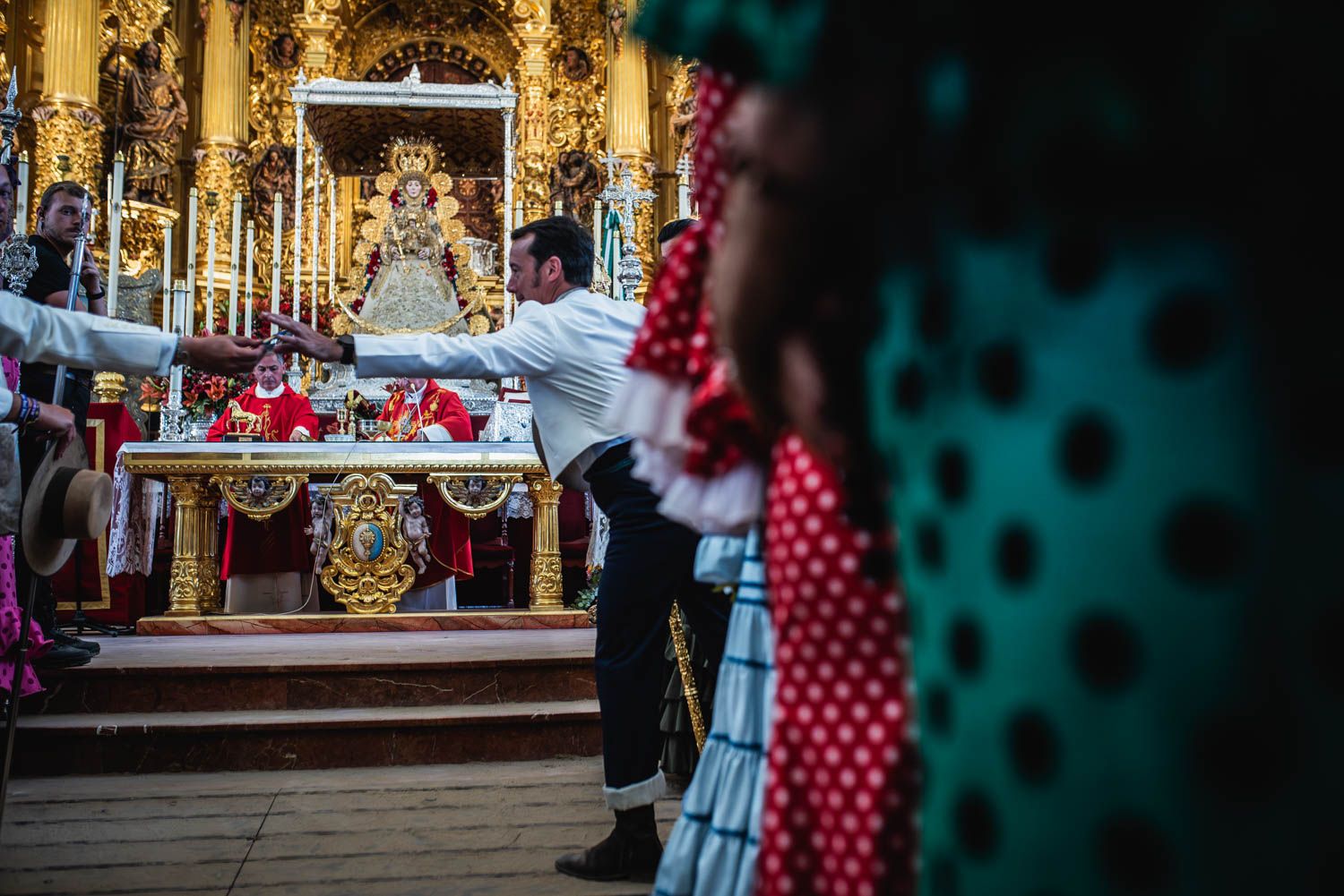Llegada del simpecado de la Hermandad Matriz de Almonte a la ermita.