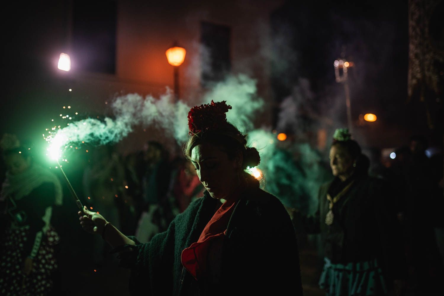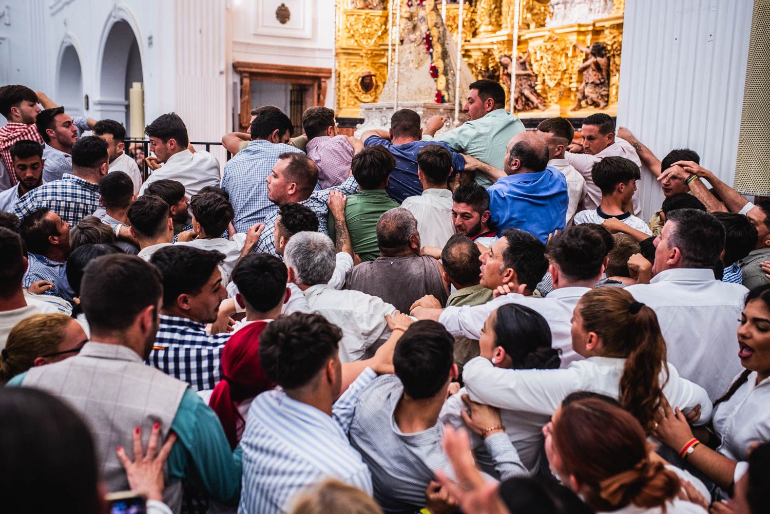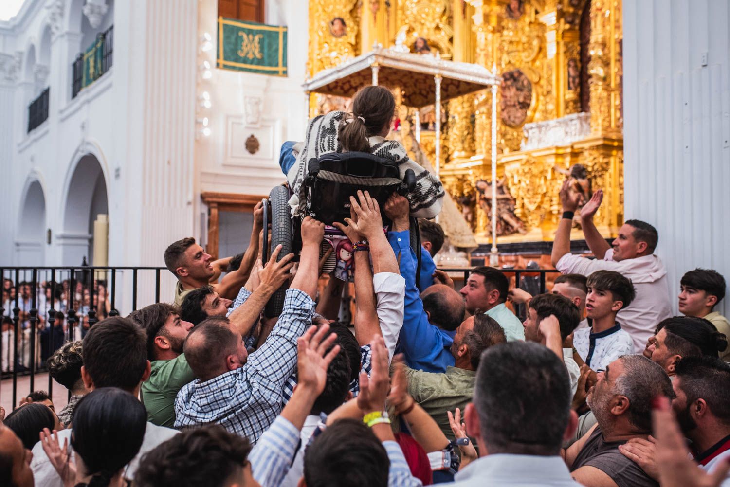 Almonteños levantan a una persona en silla de ruedas, momentos antes del salto de la reja.