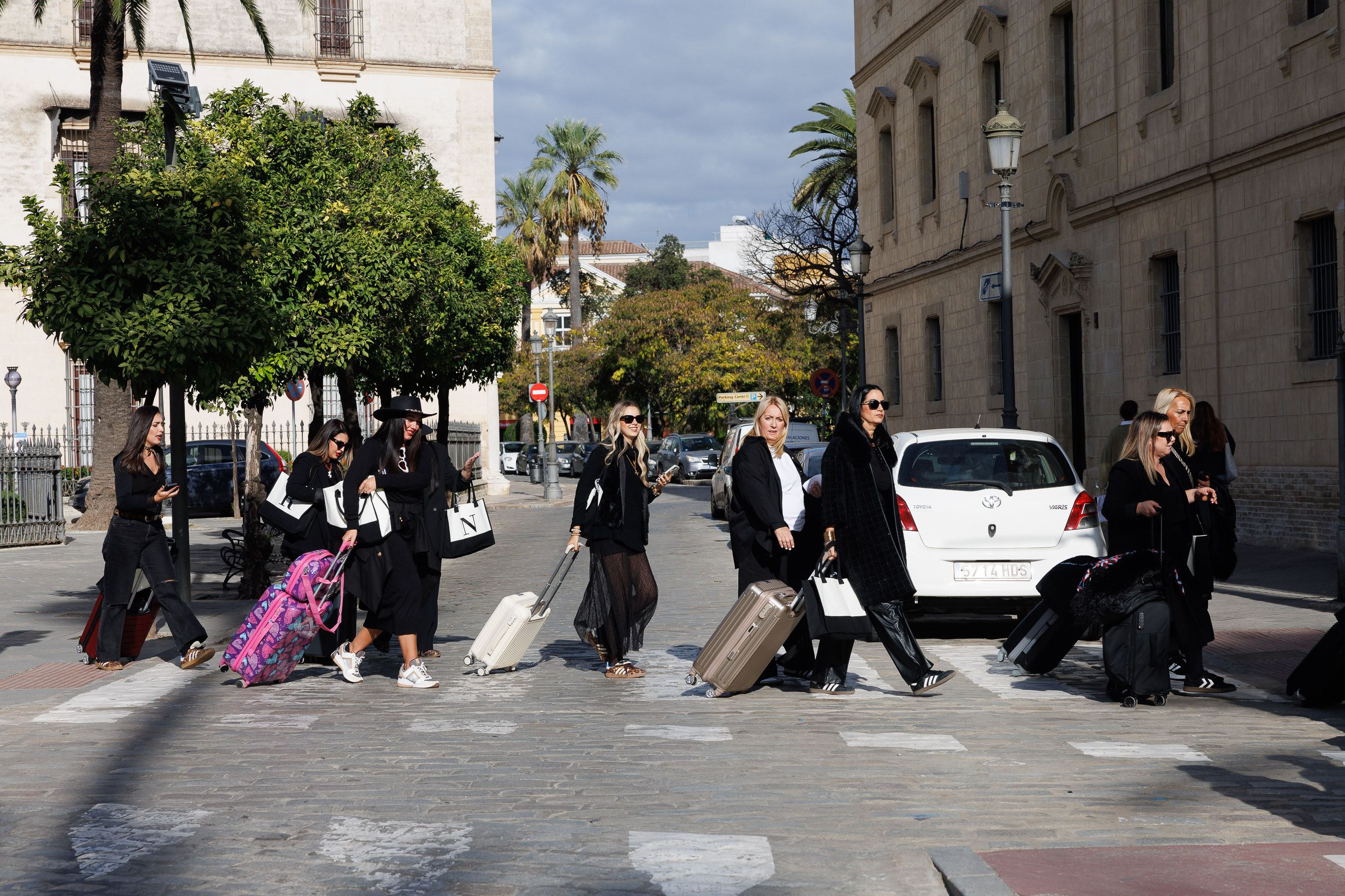 El villancico que cantan no es de los típicos de aquí, se puede detectar al vuelo. Las ganas de fiesta que traen, eso sí, son importables aquí y en Pekín. Trolleys como las de estas sevillanas aparecen a cada esquina desde mediodía y el ambiente de los camiones de carga y descarga en el centro de Jerez augura un fin de semana de lleno hasta la bandera en la hostelería del octavo municipio de España con mayor tasa de paro (un 23%, datos recientes del INE). ¿El boom turístico y la masificación que volverá desde hoy y hasta el próximo 24 de diciembre es un bálsamo contra esa lacra? Nadie lo duda, nadie lo discute. ¿Acabará este fenómeno con nuestras tradiciones, con nuestro acervo navideño, con nuestro ritual zambombero? No lo creo.