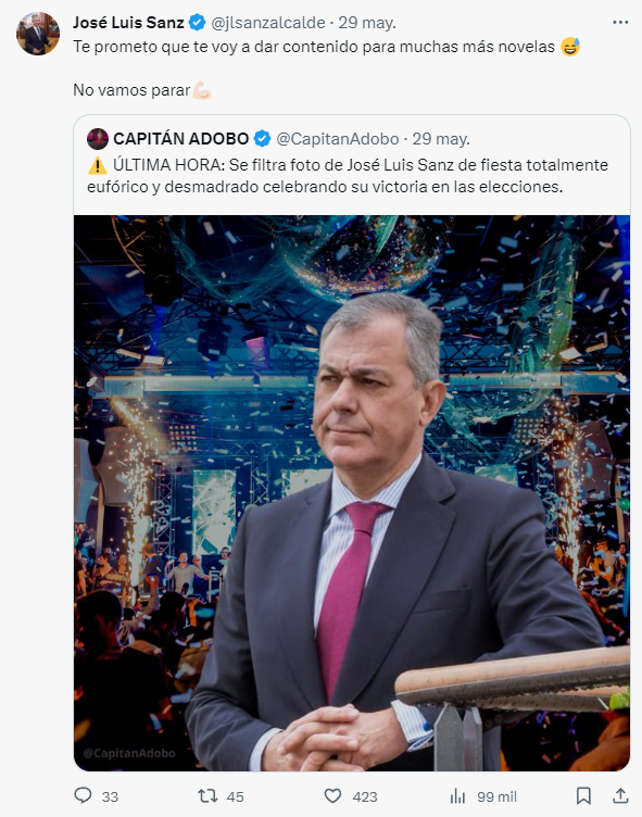 Y, sin embargo, un paseo por las redes sociales de José Luis Sanz, permiten comprobar claramente cómo no tiene nada que ver el Sanz candidato con el Sanz alcalde. En un esfuerzo de su equipo de campaña, Sanz aparecía sonriendo y desenfadado en muchísimos eventos a los que acudía, en muchos paseos para pisar la calle.