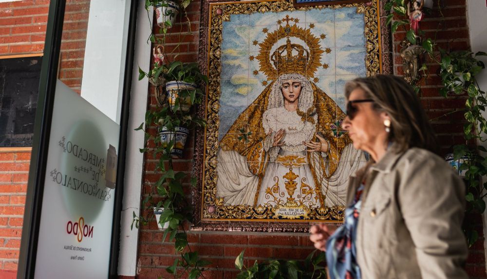 A pocos metros, esperando su turno para comprar chicharrones está Presentación Lozano. "Soy Saetera Mayor por el Ateneo de Sevilla", presume. También es vecina del barrio y eso significa que hoy está pendiente de la salida del Soberano. "El Lunes Santo lo especial es San Gonzalo, ¿no ves que están todos los puestos cerrados? Está todo el mundo preparándose", apostilla.