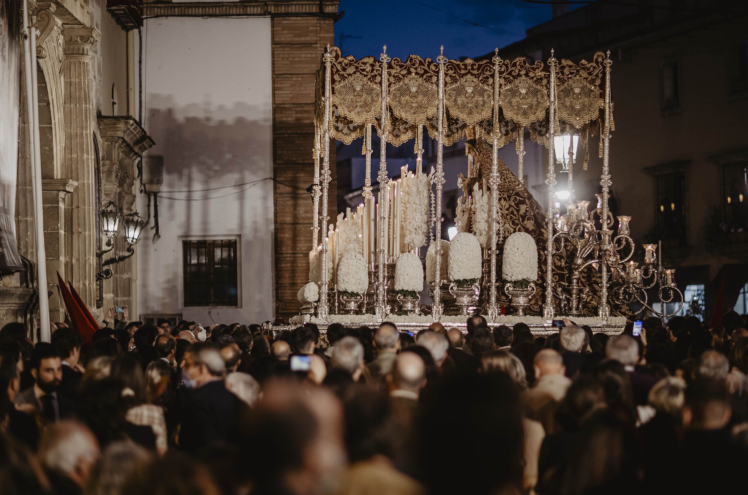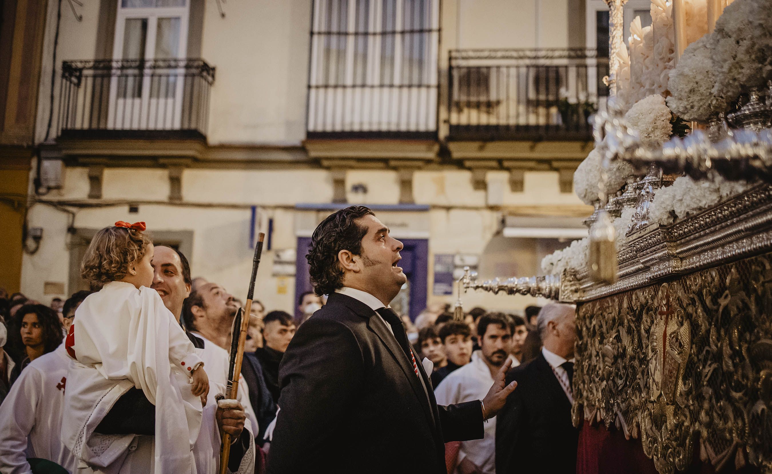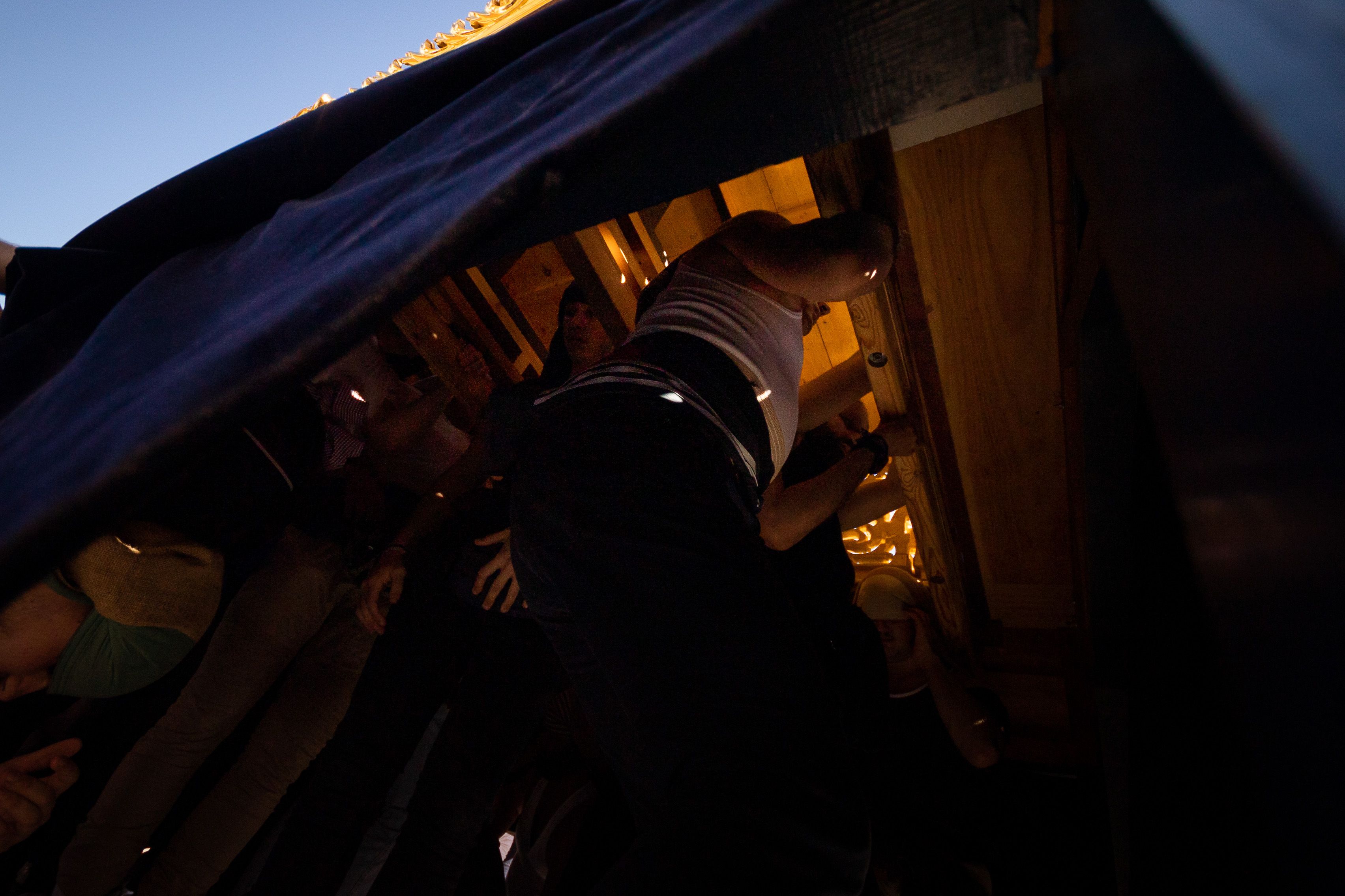 El Señor de Santiago, El Prendimiento, enmarcado en la puerta de salida a punto de asomarse al Angostillo.