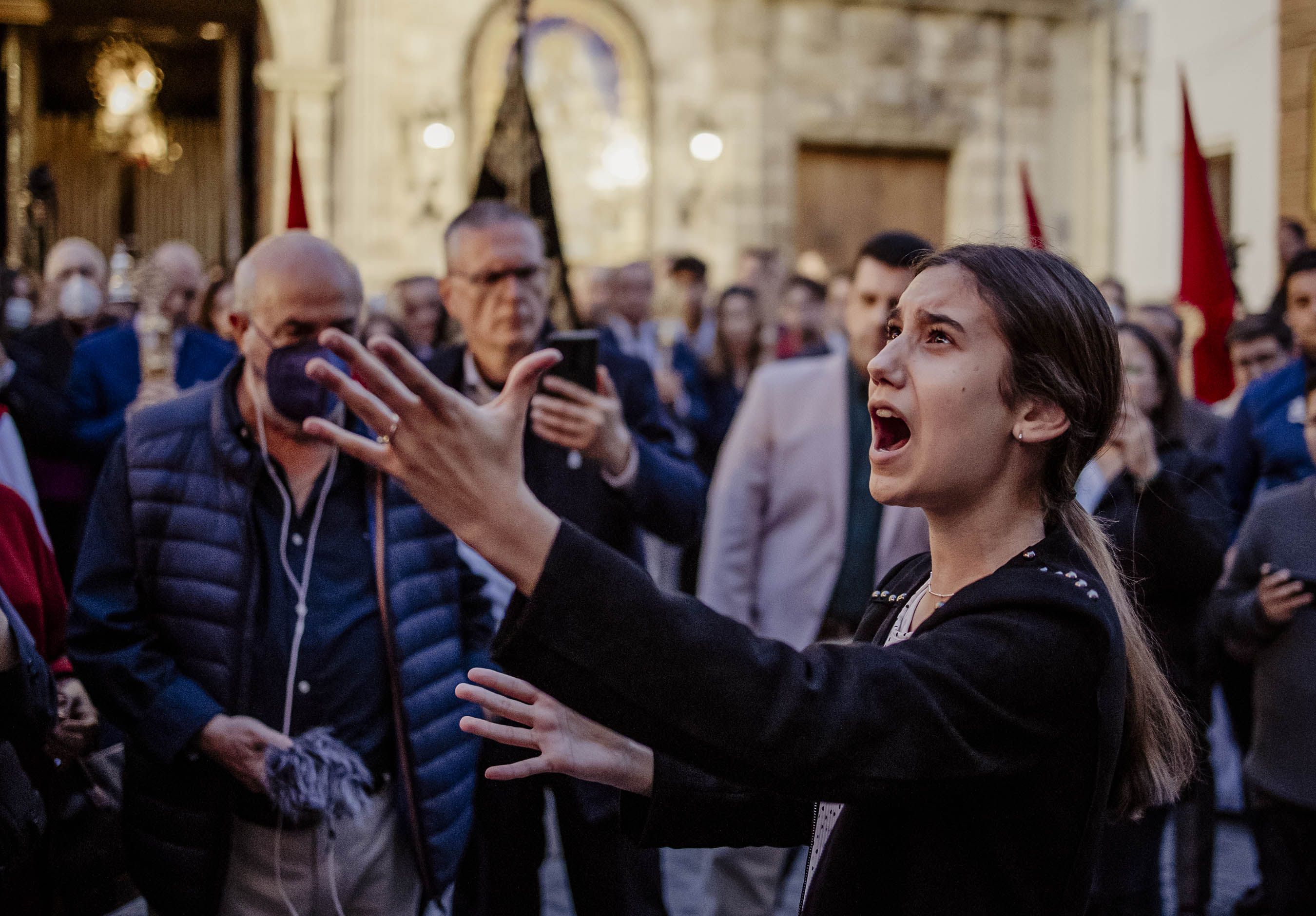 Cortejo de 'negro' de las Tres Caídas, ayer.