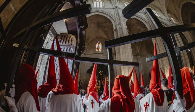Pero quedaba muchísimo por ver. A sus horas previstas todas las hermandades se pusieron en las calles comenzando con el Soberano Poder, cuyo recorrido sigue siendo largo e intenso. Desde las tres de la tarde, aunque ese récord, este año al menos, se ha superado por Guadalcacín. La más tardía en ponerse en la calle fue la cofradía de Santiago con todos sus estereotipos mezclados con mucho del reconocimiento que le arropa aquí y a muchos kilómetros de distancia. El Prendimiento es un imán que atrae cuyo rostro y manos amarradas no deja indiferente, ya sea por devoción o por admirar la calidad artística de la hechura. Este miércoles se vio el palio del Desamparo ya restaurado en sus bordados, recuperando la maravilla de armonía y proporciones que regaló a Jerez el ingenio de Elena Caro.