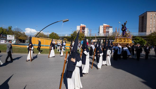 La cofradía de la barriada de La Granja fue elegante en la calle, como viene sucediendo desde hace algunos años. Su crecimiento es evidente. Después de dos años de ausencia volvió con un cortejo ordenado y con detalles que han sabido afianzar, sin que el paso de los años los hayan apartado: confesiones sobre la marcha a los nazarenos, su dispositivo de atención y asistencia. El reto de cada año ya lo es menos. Menos numantino, menos heroico y más asumido entre sus hermanos. Y una identidad propia que es difícil de adoptar pero que en La Granja lo van consiguiendo.
