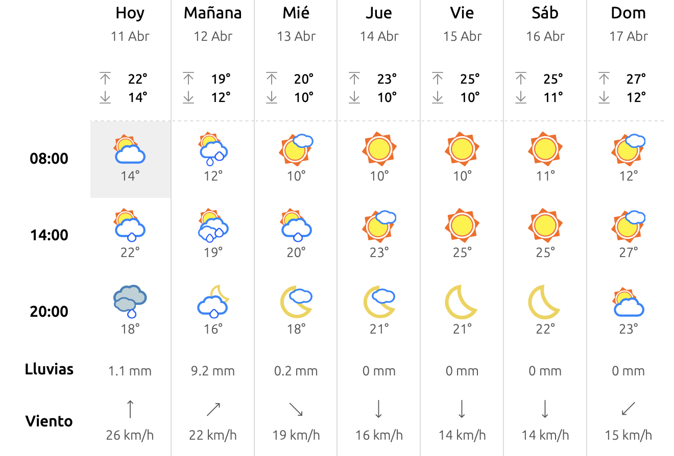 Entre tanto los pronósticos consultados singuen sin varias el riesgo de lluvias para hoy. El tiempo.es mantiene esas lluvias desde las 18 horas en adelante, precipitaciones que seguirían el martes hasta las 18 horas. La AEMET ofrece casi el mismo pronóstico tanto para hoy como para mañana e incluso da algo de lluvia, mínima, al mediodía del miércoles.