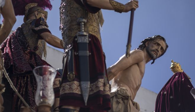 Entre tanto, La Entrega llegaba al centro arrastrando tras el paso -desde la salida- a madres, padres, hermanas, hermanos, e incluso abuelos de nazarenos o costaleros -acompañantes bien pertrechados de mochilas o bolsos con viandas para ellos y su gente- para plantarse en San Juan de Letrán, el ecuador de la procesión. Tocaba volver con el mismo ritmo y fortalecido el ánimo, más avivado por la recepción que Jerez les hizo con homenajes en forma de palmas a todo el que pintaba algo en el cortejo.